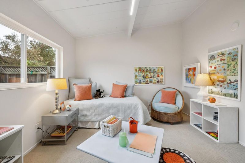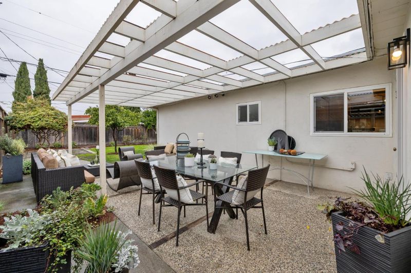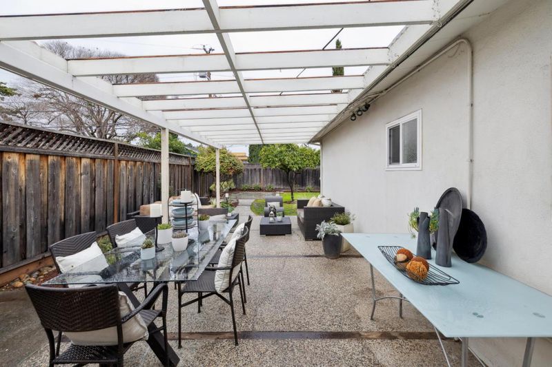 Set back from the street behind manicured hedges, a front lawn, a sunny front porch, and a colorful bottlebrush tree, this lovely residence offers classic California indoor/outdoor living in a convenient neighborhood just blocks to Whisman Park and Permanente Creek Trail. The 3-bedroom, 1-bath home features a great room layout, crowned by a high vaulted wood ceiling with exposed beams and includes a bright living room, dining area, granite-appointed kitchen, and a family room with a door to the backyard. The carpeted bedrooms, all with vaulted wood beamed ceilings, are privately positioned down a hall at the rear of the home. Outside, the newly refreshed backyard provides an expansive level lawn, a long pergola-covered dining patio, mature landscaping, and a variety of trees and plantings. Just minutes to shopping and dining, Mountain View High, plus easy access to commute routes and Caltrain station, this lovely home is ready to live in as-is today or expand for the future.