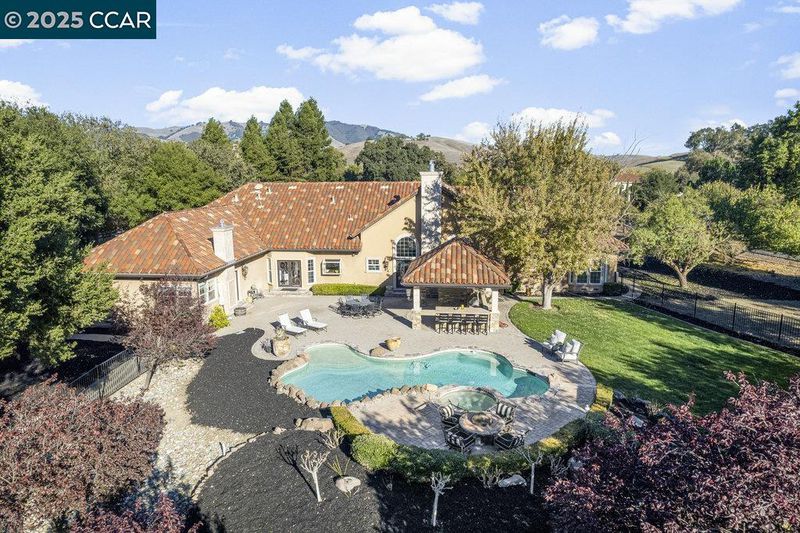Welcome to 5655 Bruce Drive set on a flat 5.35-acre lot. This single-story country estate spans over 5,373 sq.ft. with 6 bedrooms, ( one used as an office), a bonus room, and 3.5 baths — offering flexibility for family and guests alike. The chef’s kitchen is the heart of the home, featuring high-end stainless steel appliances, a grand center island with seating, walk-in pantry, and large casual dining area. The spacious formal dining room can host large family get togethers, the living room intimate gatherings, while the family room showcases soaring ceilings, a fireplace, and wraparound bar. The primary suite and secondary bedroom sit on one side of the home, with additional bedrooms (including a junior suite) on the other. Mudroom, bonus room, & large laundry area complete the thoughtful floor plan. Outdoors, enjoy resort-style living with a covered pavilion and full outdoor kitchen, pool & spa, and expansive grounds lined with many fruit and nut trees. Additional features include hardwood flooring, new carpet and paint, video surveillance system and owned solar. For the equestrian there is a 6-stall barn plus multiple fenced pastures and space. Just minutes from top-rated DANVILLE schools, shopping, & dining offering luxury country living in the heart of Tassajara Valley.
