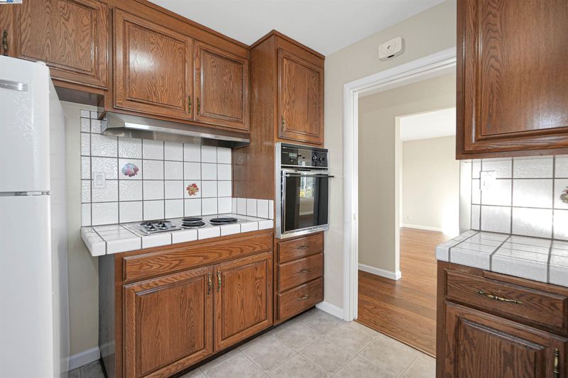 - Dishwasher, Gas Range, Oven, Refrigerator, Tile Counters, Gas Range/Cooktop, Oven Built-in