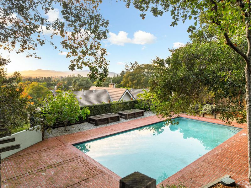 Perched on a tree-lined street in the sought-after Alta Heights neighborhood, this warm and inviting 3 bedroom/3 bath home offers breathtaking VIEWS and the convenience of single-level living with a versatile den/extra room downstairs part of which could be a fourth bedroom. Step inside where every room is filled with natural light and every window frames the surrounding hills and Napa City scape. Seller has lovingly cared for this home over the years, with updated bathrooms, warm-tone wood flooring and carpet upstairs, cork and cement downstairs, soothing paint colors in each room, and the addition of paid solar installed in 2019 for energy efficiency. Outside, a sparkling pool awaits your own private retreat just minutes from downtown Napa. There's ample space to create an outdoor kitchen and covered lounge area, perfect for entertaining or simply relaxing poolside and feeling like you're on vacation every day. The front yard features an enchanting pollinator garden, and the back has planters for fruits/veggies, treasured oak trees, and cherry, lemon, persimmon and fig trees complete your mini orchard. With its desirable location, expansive potential, and quintessential Napa Valley lifestyle, this Alta Heights gem is ready to be transformed into your dream wine country escape.