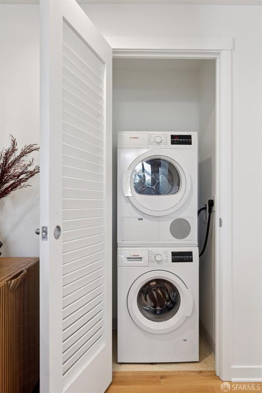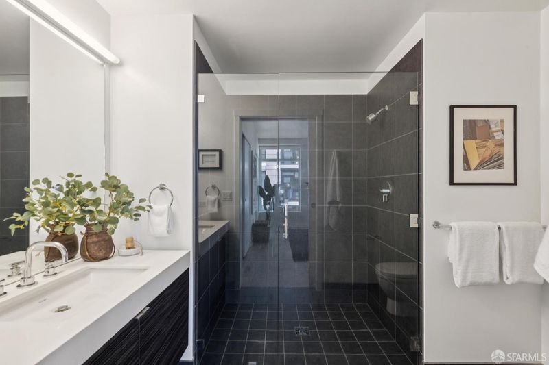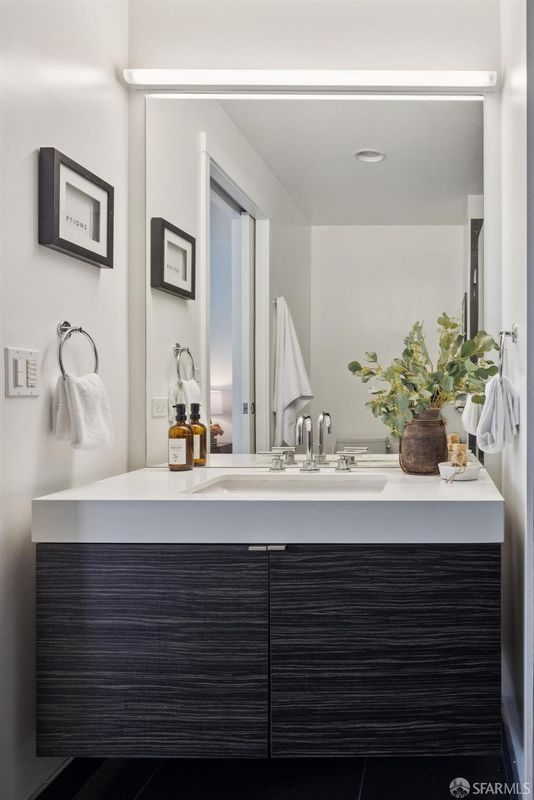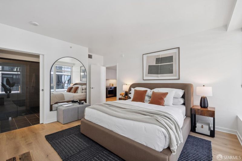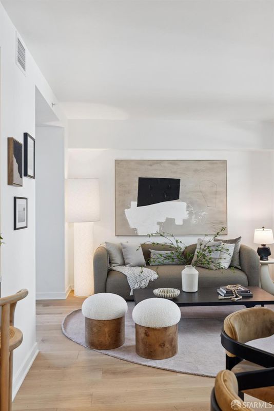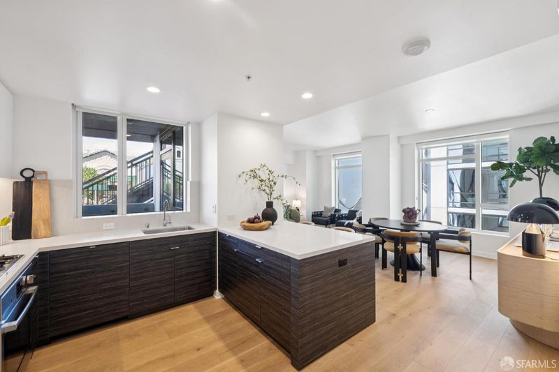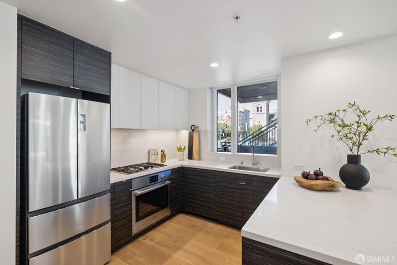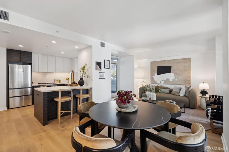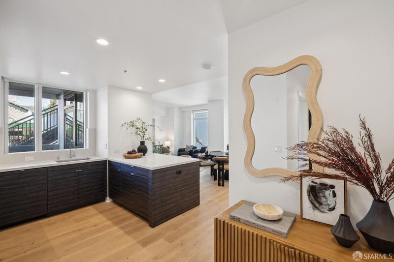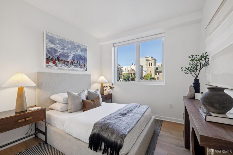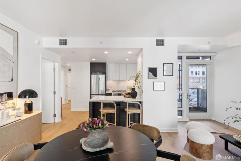 Sophisticated and stylish, this two-bedroom, two-bath residence at The Rockwell was hand selected from the developer by the seller for its layout and location. The open-concept floor plan is anchored by a chef's kitchen, with a large island, custom Studio Becker cabinetry, and premium finishes, flowing seamlessly into the dining area and living room. From here, a private deck extends the living space outdoors perfect for morning coffee, evening relaxation, or entertaining. The primary suite boasts a spa-inspired ensuite bath and two generous closets, while the second bedroom offers flexibility for guests or a home office. Thoughtful conveniences include in-unit laundry, air conditioning, and one-car parking. The Rockwell elevates city living with exceptional amenities: a 24-hour attended Grand Solarium lobby, state-of-the-art fitness center, landscaped courtyard with fireplace and BBQ, Owner's Club with media room and gourmet kitchen, and a dramatic penthouse-level Sky Lounge with outdoor terrace and fire-pits framing sweeping San Francisco views. Set at the crossroads of Pacific Heights and Nob Hill near Whole Foods, Polk Street, and tech shuttle stops this home delivers refined style and effortless access to the city's best dining and shopping.