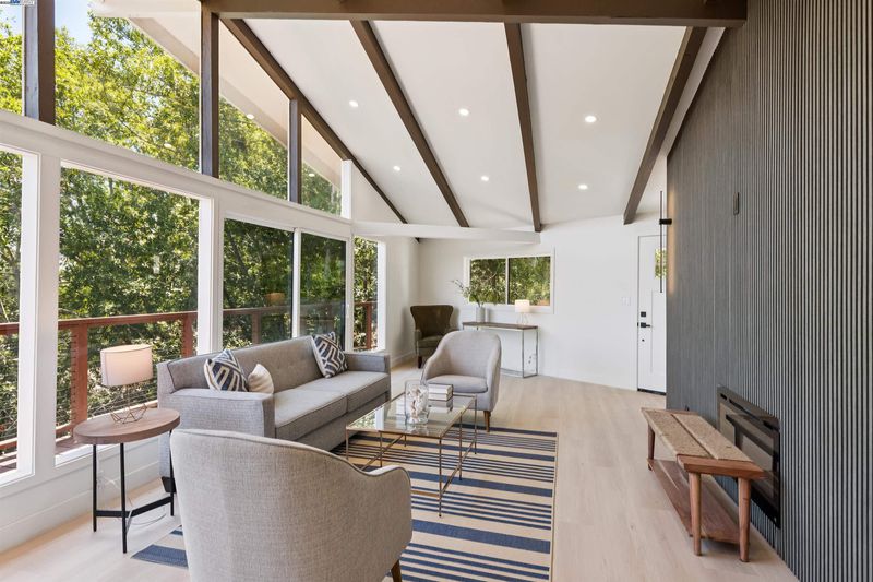Perched above the heart of San Anselmo, this hillside residence captures the essence of Marin living with panoramic views, timeless mid-century character, and fresh modern updates. An airy open floor plan with vaulted ceilings and walls of glass fills the home with natural light, while a sleek fireplace anchors the living room — perfect for both quiet evenings and lively gatherings. The chef’s kitchen is fully updated with quartz countertops, stainless steel appliances, and custom cabinetry, creating a stylish space that blends seamlessly with the main living area. Step outside to an expansive wraparound deck, where mornings begin with coffee above the treetops and evenings end with sunset skies. Inside, the updated bathroom features contemporary tilework and fixtures. Beyond the main living spaces, a large, versatile storage area adds practicality and flexibility — ideal for gear, hobbies, or the possibility of a future gym or studio. Rare for the neighborhood, the property also includes a designated carport and a flat paved area with room for multiple guest vehicles. Set on a quiet hillside just minutes from downtown shops, dining, parks, and trailheads, this move-in ready home offers a rare blend of style, function, and the best of indoor-outdoor Marin living.