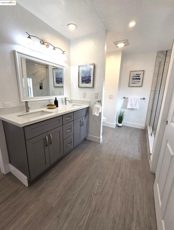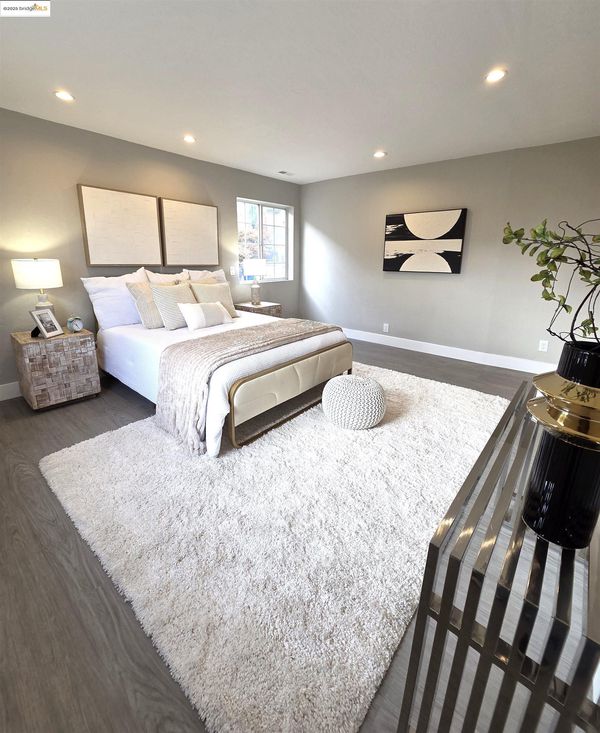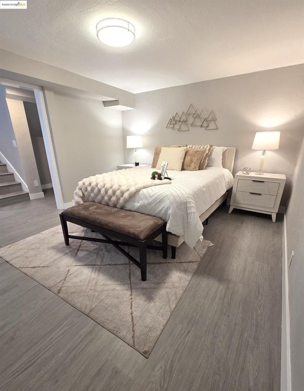 Beautiful two-story home featuring 5 spacious bedrooms, 3 full bathrooms, and a 2-car garage. Nestled in the Hill Crest Knoll community, this residence offers a fantastic floor plan designed to maximize comfort, functionality, and natural light throughout. Freshly painted interior and new LVP flooring that flows seamlessly through the home. The home also features dual-pane windows, recessed lighting, and a beautifully updated kitchen with quartz countertops, Stainless Steel appliances with an adjoining dining area perfect for family gatherings. Main level features a primary suite complete with an updated en-suite bathroom, plus an additional bedroom and full bathroom. Lower level offers 3 more bedrooms, 1 full bathroom, a cozy family room, and a flexible office/bonus space-perfect for work/play. Conveniently located near schools, parks, shopping, dining, public transportation. Minutes from Lake Chabot hiking trails, Castro Valley, Downtown San Leandro & BART. Easy freeway access to 580, Bay Bridge, & San Mateo Bridge makes commuting a breeze.