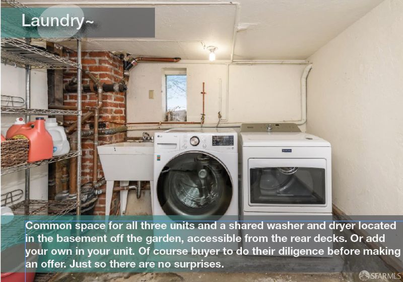 - Dryer Included, In Basement, Inside Area, Inside Room, Sink, Washer Included