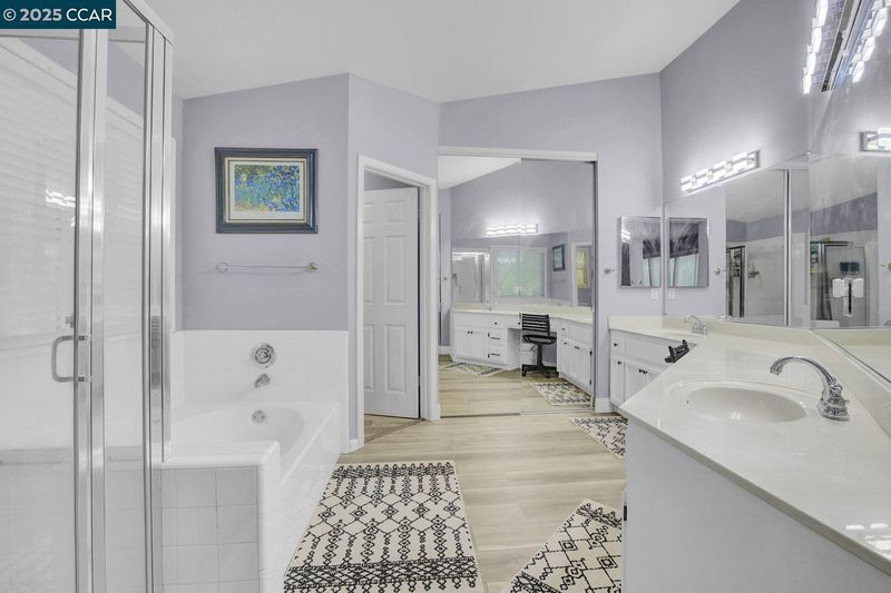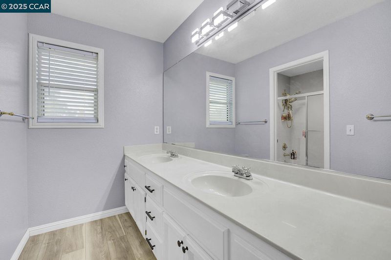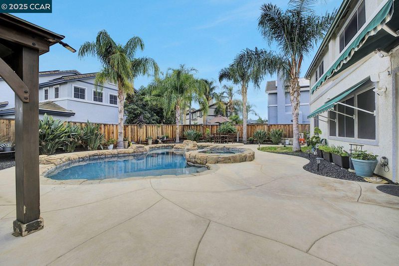 Home Oasis!!! Enjoy a resort-style feel right in your own home. As you enter, you’ll step into a bright Living/Dining room with a high ceiling and expansive windows that fill the space with natural light. The flow continues into a freshly updated open-concept kitchen, featuring a large breakfast island and updated stainless steel appliances. The family room invites you to unwind, complete with a fireplace for cozy evenings. A convenient downstairs bedroom offers flexible space for guests or a home office, with a full bathroom right nearby. Upstairs, two standard bedrooms share a dual-sink hall bath. A Primary Bedroom Oasis awaits, featuring a personal sauna and an en-suite spa-inspired bathroom, along with a large walk-in closet with built-in drawers and shelves for organized storage. Finally, step outside to your resort-style backyard. The pool and spa offer a true relaxation haven, featuring a spacious lazy river perfect for sunbathing on hot Brentwood days. Backyard includes two large patios, including a covered area ideal for dining and entertaining. This home sits on a premium lot with plenty of room to store recreation toys and outdoor gear. A perfect balance of luxury and outdoor living awaits. Location - Walking distance to Schools, & Everyday Shopping needs. Must See!!
