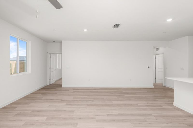 Discover everything you've been looking for in the Eureka floor plan by LGI Homes, now available in the beautiful Dantoni Ranch community. This thoughtfully designed one-story home offers four bedrooms, two full bathrooms, and a spacious, open-concept layout perfect for everyday living and entertaining alike. From the moment you step inside, you'll notice the attention to detail and high-end features included at no extra cost. The chef-ready kitchen is the heart of the home, showcasing gorgeous countertops, sleek wood cabinets with crown molding, and a full suite of energy-efficient Whirlpool® appliances, including a refrigerator and built-in microwave. A sprawling granite breakfast bar provides additional seating and prep space, ideal for casual dining or hosting guests. Natural light fills the open living areas, thanks to large windows and ENERGY STAR® LED flush-mount lighting, creating a warm and inviting atmosphere throughout. The private owner's suite features two large windows, a spacious walk-in closet, and an en-suite bath complete with a step-in shower and oversized vanity. With modern finishes, energy-saving features, and smart home conveniences already built in, the Eureka plan is the perfect blend of comfort, style, and value.
