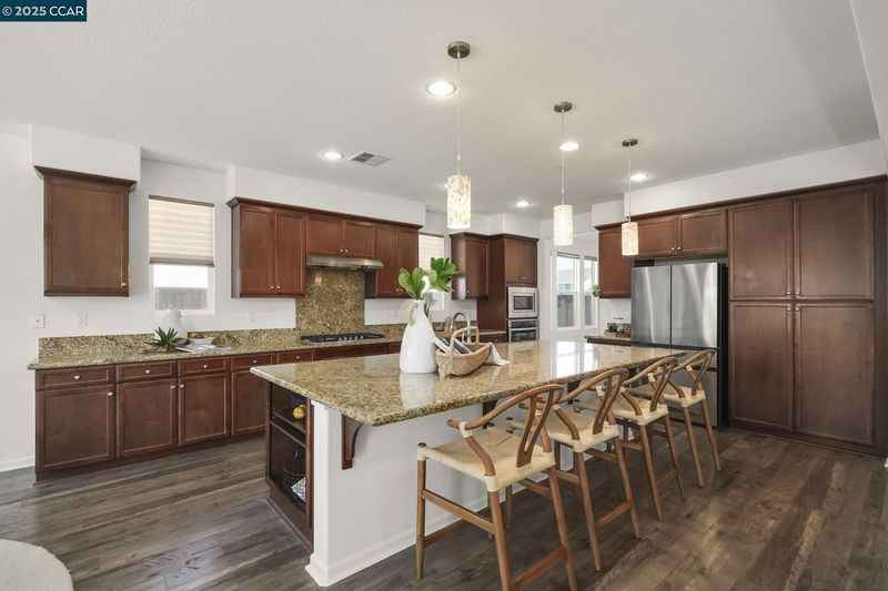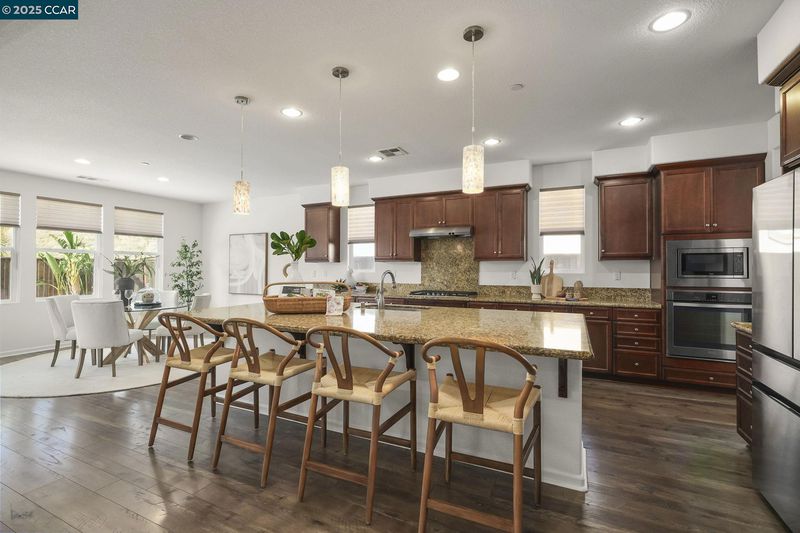 - Dishwasher, Gas Range, Refrigerator, Gas Water Heater, Stone Counters, Eat-in Kitchen, Disposal, Gas Range/Cooktop, Kitchen Island, Updated Kitchen