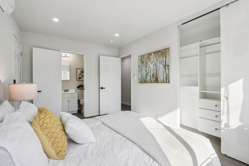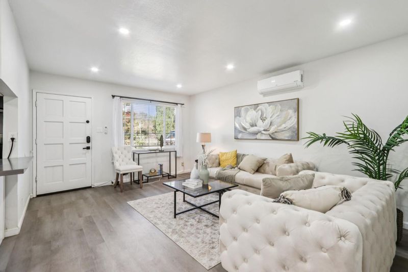 This north facing move-in ready upgraded San Jose residence that's waiting for you to move in, relax, and enjoy! Step into the thoughtfully designed open layout and discover freshly painted neutral color tones paired with a fusion of tile and hardwood-style flooring. Gather in the family room and unwind in the warmth of the painted brick fireplace. Explore the tastefully remodeled kitchen that displays a contrast of black countertops and a white cabinetry set. Modern upgrades include an LG split-system A/C, new washer and dryer, refrigerator, and dishwasher. The exterior shines with new low-maintenance landscaping, complete with artificial turf and a charming patio swing, perfect for relaxing or entertaining. For your convenience. With Hellyer County Park, Valley Christian School, shops, and freeways nearby, a life of comfort and convenience awaits. Come for a tour of this inviting abode before the opportunity slips you by!