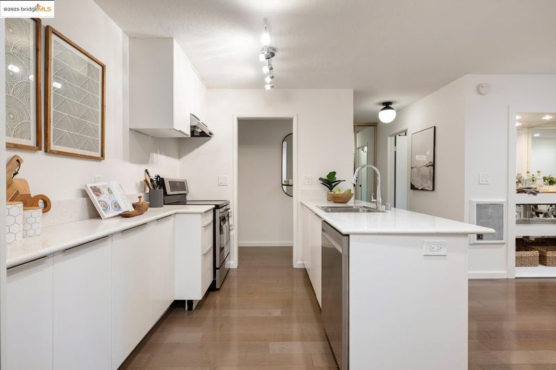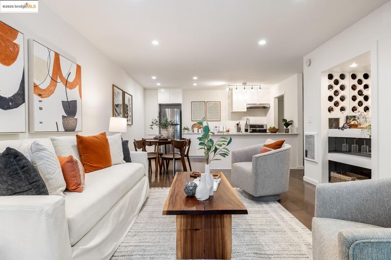 Just three blocks from the sparkling shoreline of Lake Merritt, this stylish one-bedroom, one-bath condominium perfectly balances city living with a sense of calm retreat. Step inside to a light-filled living room where a sliding glass door opens to your private balcony- ideal for morning coffee or evening cocktails. A chic, illuminated bar niche adds a touch of sophistication, while the open floor plan seamlessly connects the living, dining, and kitchen areas for effortless entertaining. The kitchen is a modern delight with a peninsula-style layout, sleek stainless steel appliances, and plenty of counter space for cooking or casual dining. In the bathroom, a shower-over-tub setup invites relaxation, complemented by a new mirror and vanity light for a fresh, polished look. The spacious bedroom offers dual mirrored closets that enhance both storage and light, creating an airy, tranquil space to unwind. Just a quick drive to Downtown Oakland and with easy freeway access to San Francisco, everything you need is within reach- including Whole Foods, only a few blocks away. Urban convenience meets everyday comfort in this elegant Oakland retreat.