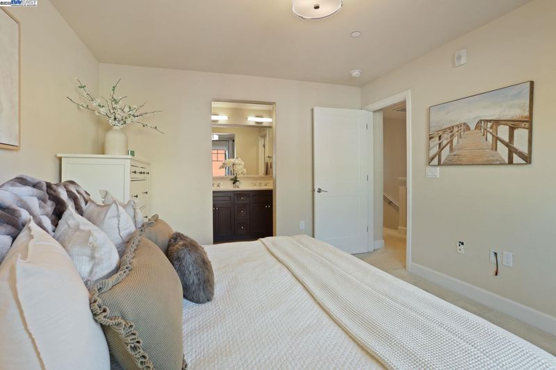 Price improvement and EXCEPTIONAL VALUE! You will love the coveted SAGE Community! Come and see this Beautiful North-Facing and Private End -Unit. Light, bright and open floor plan that features 3-bedroom, 3.5-baths. The main entry level has a private bedroom en-suite with full bath, ideal for guests or extended family. An updated stunning chef’s kitchen featuring quartz counters, a large island with breakfast bar, stainless appliances, new lighting and tile back splash, perfect for hosting friends and family. Also, great storage in your large walk-in pantry. Upstairs, you'll find two spacious bedrooms, including an updated primary suite, plus a versatile bonus space, currently set up as a music studio. Enjoy the amazing Resort-Style Amenities including clubhouse, full fitness center, lap pool, cabanas, two hot tubs, and more. Prime location with quick access to I-580 and Hwy 84, close to Las Positas College, Cayetano Park, dog park, outlets, and just minutes to downtown Livermore’s shops, restaurants, and wineries. This Is a Must See!