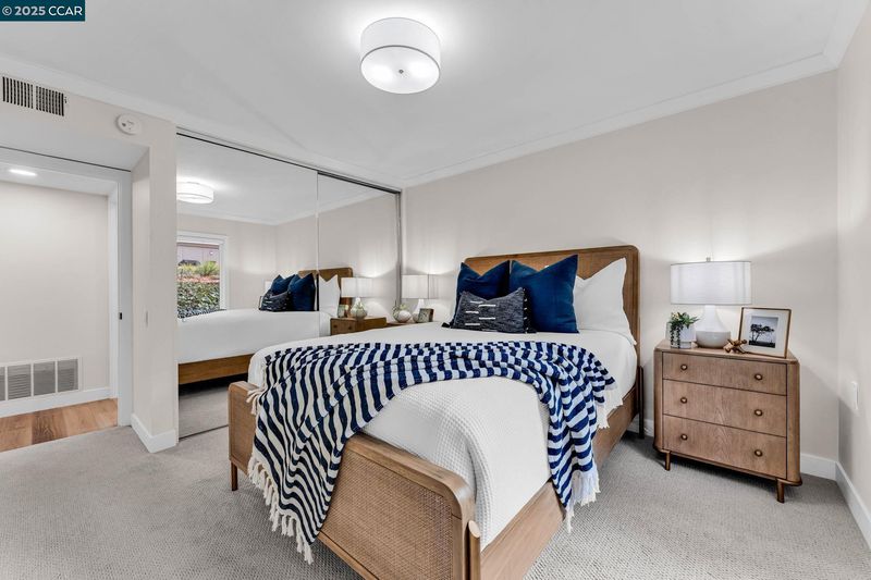Welcome to 1216 Fairlawn Ct #8. Nestled in the most tranquil entry at the top of Fairlawn, this newly remodeled co-op has it all. Offering ample space for comfortable living, this inviting 1,222 square-foot home boasts two spacious bedrooms, two modern bathrooms, a separate office/artist's loft or bonus space and a separate laundry room. Step inside to discover a well-appointed interior featuring a gorgeous expanded kitchen, complete with custom wood cabinets, quartz countertops, stainless steel appliances and a sunny window over the large kitchen sink. The primary bathroom has a spa-like feel and features a large custom shower, custom wood cabinetry and a window to welcome natural light. The second bathroom features a sleek spacious tub and a beautiful wood vanity with tons of storage. Enjoy the fall colors from your living room complete with a built-in electric fireplace. Throughout the unit you will find brand new dual pane windows, recessed lighting, and designer touches sure to please. For those who love to entertain, the outdoor area featured within this peaceful entry is an ideal spot for hosting gatherings with family and friends. Residents of Rossmoor enjoy an array of exceptional amenities, including multiple pools, a fully-equipped gym, tennis, pickleball and more!