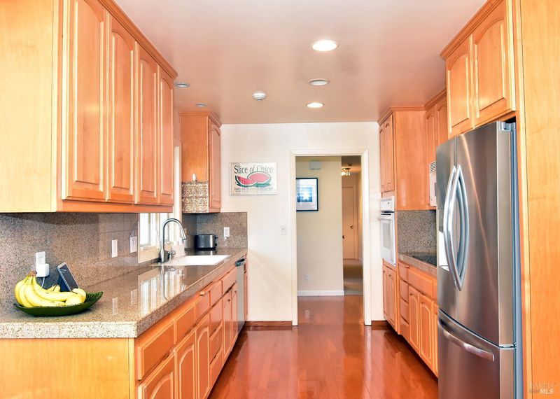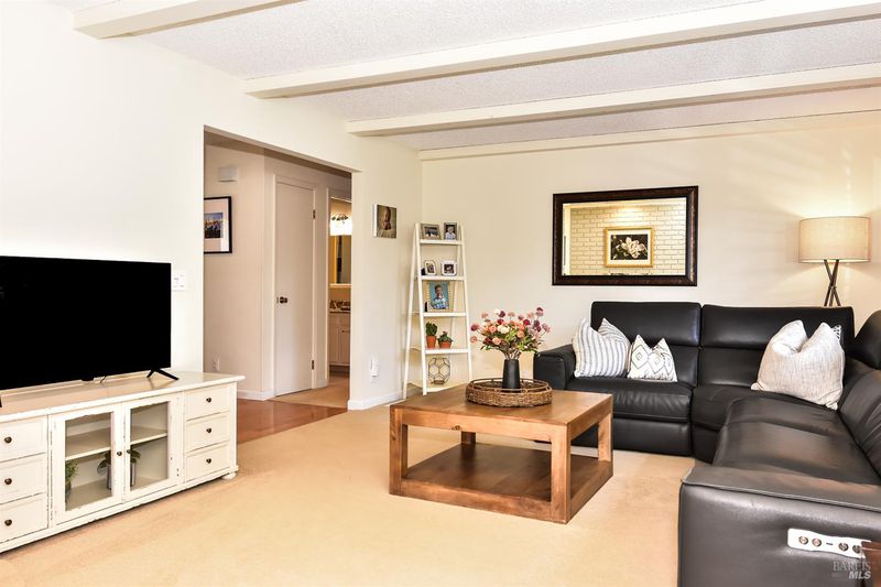 This Bennett Valley home offers both comfort and versatility with its single-level layout, perfect for a variety of lifestyles. Meticulously maintained and thoughtfully designed, it features an enclosed sunroom with additional square footage. The heart of the home is an open living area that seamlessly connects the common rooms. The kitchen boasts ample counter space, built-in cooking appliances, and deep cabinets all with pull-outs. The primary bedroom benefits from a spacious en-suite bath with double vanities, a generous walk-in shower, and plenty of closet space. The second bedroom is equally spacious, also with an en-suite bath of more moderate proportions. The full bath in the hallway is ideal for guests and general use. Dual pane windows throughout. The private fenced backyard oasis, with plenty of room to garden, play, or entertain, is larger than most in the area. The garage allows pull-through opportunity with remote-controlled doors on both ends. Located in a desirable neighborhood known for its friendly vibe, well-regarded schools, and convenient amenities, you'll be minutes from parks, shops, dining, and the city's country edge. Whether you're a first-time buyer, downsizing, or looking for a fresh start, this welcoming home is well worth consideration!