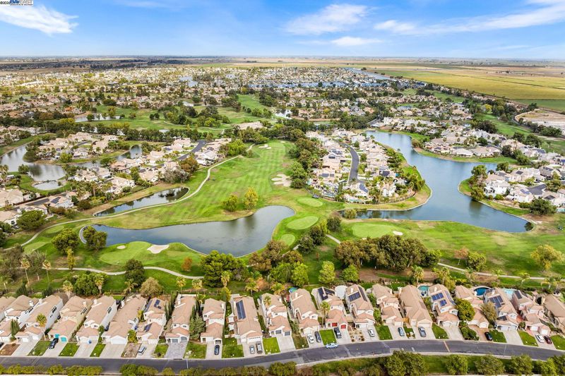 No Rear Neighbors! Beautiful Golf Course Retreat in a Gated Community Welcome to this light-filled home located behind the gates of the Discovery Bay Country Club! Your rear neighbor is the serene golf course, offering peaceful views of green fairways and tranquil ponds. Step inside to soaring ceilings, fresh interior paint, and a spacious open layout perfect for entertaining. The huge kitchen is a chef’s delight, featuring generous granite counters, abundant cabinetry, and a large island that flows seamlessly into the family and dining areas. Enjoy year-round comfort with a newer HVAC system and newer water heater. Outside, unwind beneath the beautiful new pergola—the perfect spot to sip morning coffee while listening to the birds sing and taking in the fresh air. Your living space opens to the backyard for easy indoor-outdoor living, while upstairs is the Primary Suite and bedroom, which offer plenty of space. Bedroom and full bathroom downstairs offer a great guest room or home office. Additional highlights: two-car garage, low-maintenance landscaping, community security, and nearby golf, lakes, and walking paths. Come experience Discovery Bay living—where resort-style tranquility meets everyday comfort.