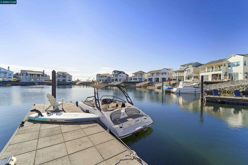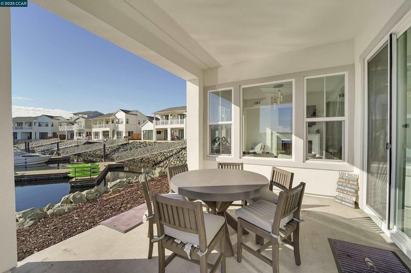 Live the luxury lifestyle you always wanted. Stunning and contemporary Delta Coves Waterfront property that checks all the boxes including your private boat ramp and launch. The expensive home boasts of designer touches throughout including an exquisite exterior design. Highlights include modern engineered hardwood flooring, Gourmet Kitchen with quartz countertops including a breakfast bar, designer bathrooms, recessed lighting and much more. This property has a Media Room and extra living space on the upper floor with more breathtaking views. Equipped with a tankless water heater and EV charger to add to the smart home concept. Enjoy comfort year-round with Owned Solar! The backyard is magical. On the water with your boat nearby ready for fun. The centerpiece of community fun is found in the nearby Island Camp. Island Camp is spectacular with a club house, pool, yoga and exercise facilities, sports pavilion with tennis courts, pickleball and beach volleyball. The swim complex offers adult and children pools and a spa to recharge. Nearby cabanas await. Let's not forget the Duffy Bar, the Camp's treasure where you can soak up the Delta views and enjoy a cocktail. The Fourth of July will be a treat with a celebration and events you will not want to miss. Your home is a vacation!