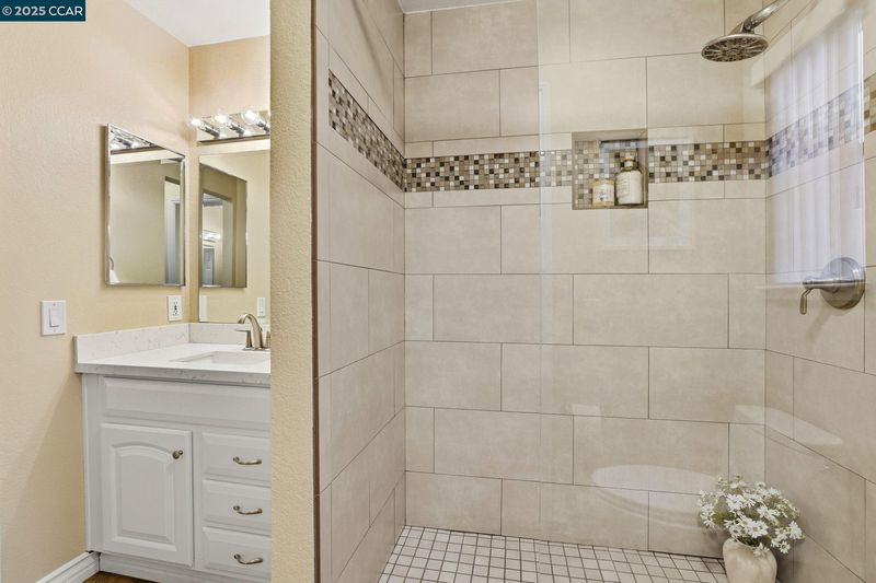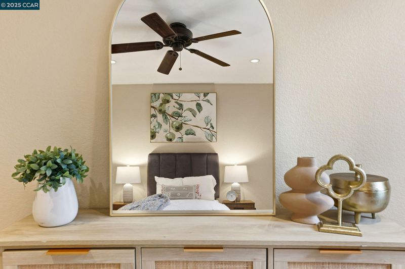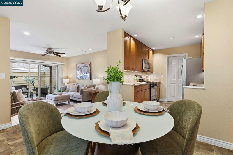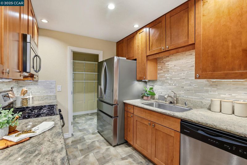 Highly upgraded 2 bedroom 1.25 bath ground floor unit with remodeled kitchen including stone counters and backsplash, custom soft close Kraft Maid brand cabinetry, stainless gas range, New LG refrigerator, tile floors, walk in pantry w/ custom shelving, laminate flooring in both bedrooms, remodeled bathrooms with modern walk in open shower, heated bathroom floors, stone counters, full size laundry space including newer LG washer and gas dryer, ceiling fans in living room and both bedrooms, recessed/ canned lighting throughout, newer gas water heater, fireplace, spacious patio, Community amenities include Clubhouse with events and ability to rent out as well, 2 pools, hot tub, gym facility, playground, 24 hour security gate, tennis courts, designated covered parking space near unit, Car Wash area, Convenient location just moments to Bishop Ranch City Center, grocery stores, shops and 680 Freeway. Walk to Canyon Lakes Golf Course, trails & parks. Don't miss this one, its not like the rest.