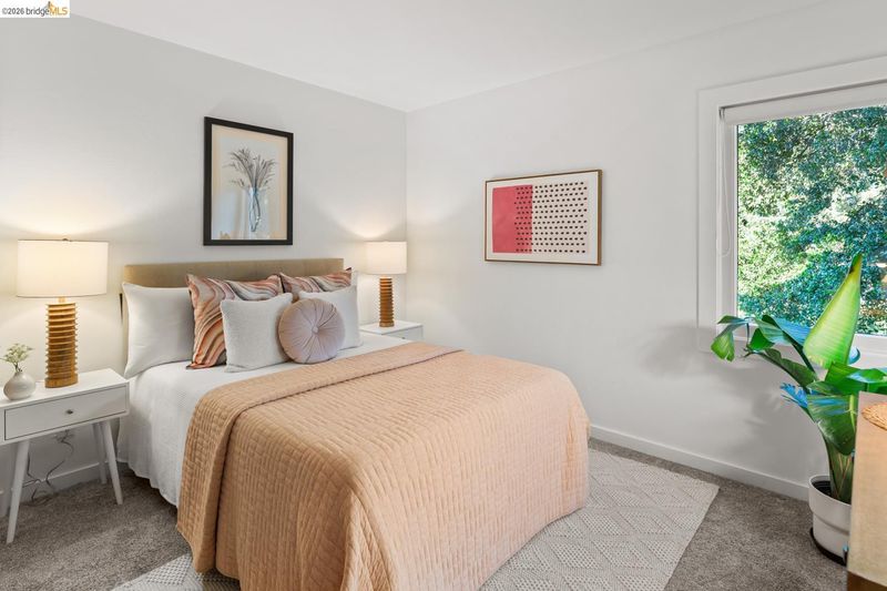 Enter on 730 Woodhaven to this beautifully renovated and sophisticated 4BD/3BA mid-century retreat blends sleek modern style with an exceptional Berkeley Hills setting overlooking Tilden Park and Wildcat Canyon. A rare level-in entry opens to a dramatic open floor plan with vaulted ceilings, abundant natural light, and floor-to-ceiling windows that frame the park vistas. The sun-filled living room with gas fireplace flows seamlessly into the dining area and expansive deck - perfect for indoor-outdoor living, entertaining, and enjoying the surrounding natural beauty. The updated kitchen features modern appliances and high-end finishes designed for both elegance and functionality. The flexible layout includes a bedroom and beautifully remodeled bath on the entry level, while two additional bedrooms and a luxurious primary suite are located on the lower level. Additional amenities include a one-car carport and a finished bonus space with electricity and heat offering excellent office, storage or workshop space. Ideally positioned in the Berkeley Hills just moments from Tilden Park’s renowned hiking trails, golf course, and Lake Anza, yet minutes to Solano Ave, Downtown Berkeley, UC Berkeley. A rare combination of modern design, privacy, and access to nature. BESO Score 1
