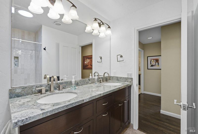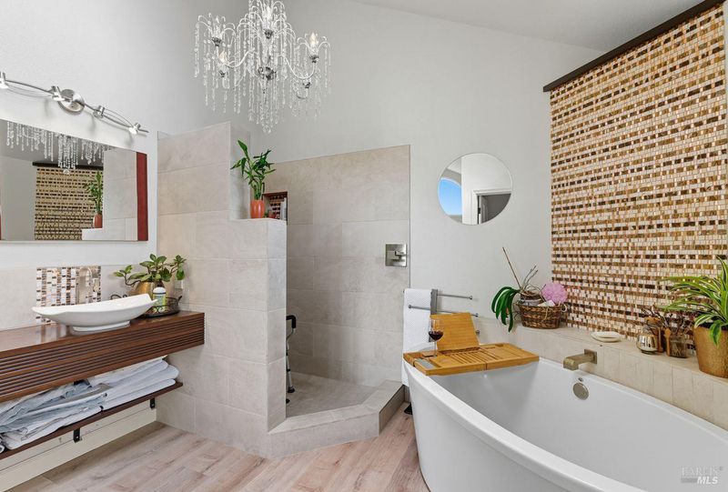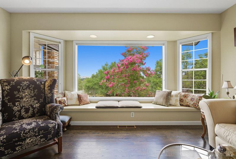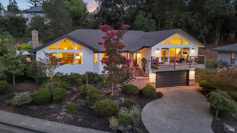Nestled in the hills of Bennett Valley, this remarkable property is steps away from Annadel State Park and the Vietnam Veterans Trail. From the moment you enter, sweeping mountain views framed by expansive windows captivate and set the tone for serene luxury. The tastefully remodeled kitchen is a chef's dream, featuring an oversized island, double ovens, top-of-the-line appliances, and stunning quartzite countertops. Every bathroom in the home has been beautifully renovated. The showstopper is the luxurious primary suite with its cozy fireplace insert and private balcony overlooking the valley and city below. The elegant ensuite bathroom boasts a stand-alone tub, spacious shower, abundant cabinetry and a dazzling chandelier. Step outside and experience a backyard designed for relaxation or celebration with family and friends. Enjoy al fresco dining on the deck, relax on the beautiful flagstone patio surrounded by citrus and pomegranates, play bocce ball, or unwind in the hot tub. This home offers a lifestyle as rich and peaceful as its surroundings. Seeing it in person is the only way to truly appreciate all it has to offer. Located near the Bennett Valley Golf Course in the prestigious Carissa Highlands neighborhood in the heart of wine country.