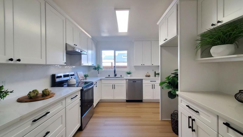 This move-in ready gem sits on a spacious corner lot and has been beautifully updated throughout. Step into a modern open kitchen featuring designer cabinetry, upgraded blind corner pullout shelf & pullout spice rack. Sleek quartz countertops, matching backsplash, recessed lighting, and brand-new stainless-steel appliances. Fresh paint and new doors throughout. Stylish LVT flooring for a clean, contemporary look. Bonus room has staging as family room and dining room (not included in county records; permit status unknown). Large corner lot with side gate perfect for extra parking or RV access. Minutes to freeway, shopping centers, and walking distance to schools.