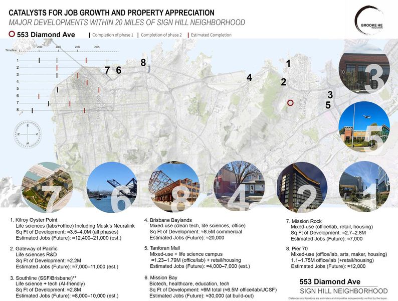Rare professionally remodeled modern living on a quiet Sign Hill cul-de-sac with sweeping South City views. This two-level home offers 4 bedrooms, 3 full bathrooms, and a reconfigured layout designed for comfort and function. A newly added family room on the lower level opens directly to the backyardideal for recreation or guest use. The main floor separates the bedrooms from the living and kitchen areas, enhancing privacy. Interior updates include engineered wood flooring, a brand-new kitchen with quartz countertops, LED under-cabinet lighting, and stainless-steel appliances. All bathrooms feature new tile, vanities, and fixtures. Electrical and mechanical systems include a 200 AMP panel, recessed LED lighting, updated HVAC ducting, and battery-powered smoke/CO alarms. The garage features epoxy floor, fire-rated wall and ceiling, and structural reinforcement. Additional highlights include a new Class A roof with waterproofing, Milgard double-pane windows with bug screens, fresh exterior paint, a Caldwell walnut-finish entry door, and a steel-railed deck overlooking the city. Located minutes from Sign Hill Park, Oyster Point, and downtown SSF, with easy access to BART and Caltrain, this home combines professional craftsmanship, modern comfort, and a peaceful, elevated setting.