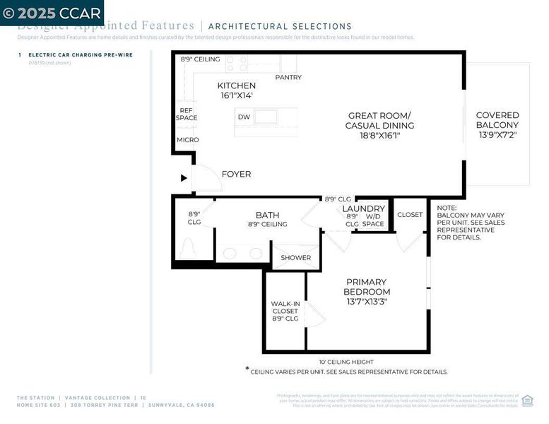 New construction move-in ready! Discover luxury living in the heart of Silicon Valley. Offering new condos in Sunnyvale, Vantage at The Station features a sought-after location that puts you close to every want and convenience. Experience chic living with this stylish and modern home design. The stunning kitchen, features a sleek island with a breakfast bar, Energy Star KitchenAid stainless steel appliances, modern style cabinets, quartz countertops enhanced by 10" elegant tile backsplash and full backsplash at cooktop. Adjacent is a bright casual dining area and great room with views to the lovely covered balcony beyond. The primary bedroom offers a desirable walk-in closet and is just steps from a full hall bath with a large shower, a dual-sink vanity, and a private water closet. Convenient reserved 1-car space with pre-wired EV charging. Enjoy the community clubhouse, Pool, indoor/outdoor lounge area, fireplace, dog wash, dog park, co-work mezzanine, entertainment lounge, fitness center, courtyard, playground, walking paths and expansive lawns. Vantage At The Station is located near Santana Row, Valley Fair Mall, Shopping Centers. Close to VTA Light Rail, Lawrence Caltrain and Bart. (photos not of actual home, for marketing only)