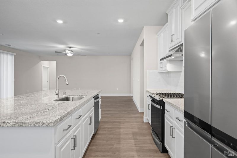 Overflowing with space and premium luxury upgrades, this single-story home is our largest floorplan in the exclusive luxury collection at Summit at Liberty, a charming 55+ community in Rio Vista. This impressive three-bedroom, three-bath residence offers a generous family room, a chef-ready kitchen, a versatile flex room, an oversized garage, and a covered back patioperfect for entertaining and comfortable living. Every detail has been thoughtfully curated, with designer-selected upgrades included at no extra cost. Enjoy energy-efficient stainless steel Whirlpool® kitchen appliances, gleaming granite countertops, elegant wood cabinetry with crown molding, tasteful faux-wood blinds on all operable windows, included solar panels, and much morecombining sophistication with modern convenience.