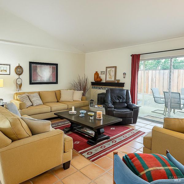 Welcome to 110 La Mancha Way, a beautifully updated end unit townhome offering comfort, privacy, and charm in the heart of Sonoma. This two bedroom, one and a half bath home spans approximately 1,190 square feet and blends warm character rich finishes with thoughtful modern updates. The kitchen features a newly installed granite counter, new sink, and ample storage along with a gas cooktop, microwave, dishwasher, and single oven. The adjoining laundry area includes a washer and dryer for added convenience. The sunken living room showcases terra cotta tile floors, a vaulted ceiling, and sliding doors that open to a peaceful partially covered back patio complete with a fountain, perfect for indoor outdoor living. The primary bedroom offers new engineered wood flooring and its own sliding door to the patio, creating a private retreat. The full bathroom has been tastefully remodeled and the half bath features a classic pedestal sink. Additional highlights include a new electrical panel, front and rear patios, a flagstone entry, and direct backyard access through the attached garage. With one garage space, an additional uncovered parking spot, and close proximity to downtown Sonoma's shops, dining, and wineries, this home combines convenience with the relaxed wine country lifestyle.