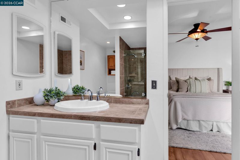 Comprehensively updated and remodeled with style and taste. Don’t miss this gorgeous single story home on a quiet court in a prime Twin Creeks South location close to Bollinger Elementary School. Features include a reconfigured kitchen with quality wood cabinetry, quartz countertops and a large central island, a spacious family room with gas log fireplace and patio door leading to an attractive sun room overlooking the back yard. The bathrooms have both been updated, doors have been replaced and the home has attractive inset lighting and high quality laminate flooring. Twin Creeks is one of San Ramon’s most desirable neighborhoods and everything here is absolutely ready for you to move in. Low HOA dues include an attractive community pool and tennis courts and the location is ideally situated for easy access to shopping, entertainment, the new City Center, freeway access, and Bishop Ranch Office Park.