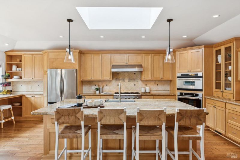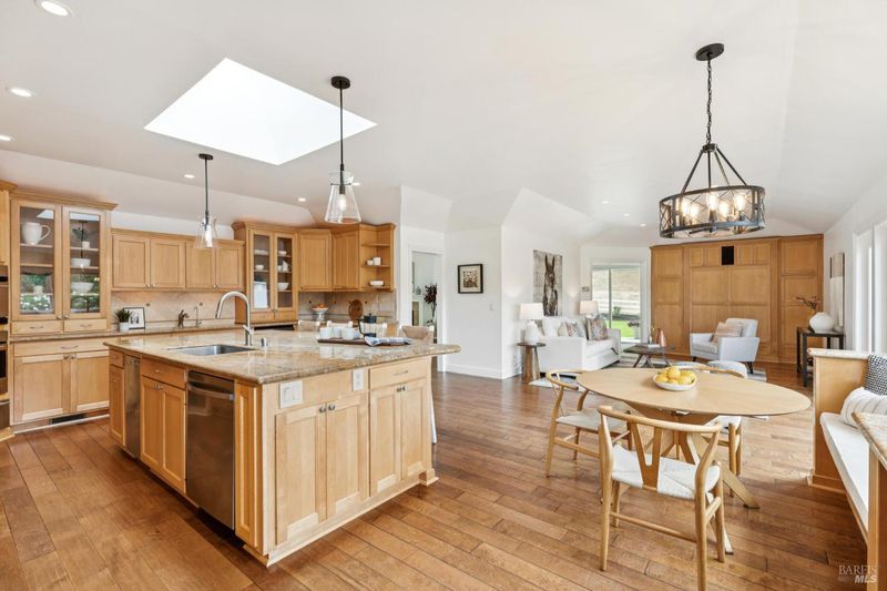 - Breakfast Area, Granite Counter, Island w/Sink, Kitchen/Family Combo, Skylight(s), Slab Counter