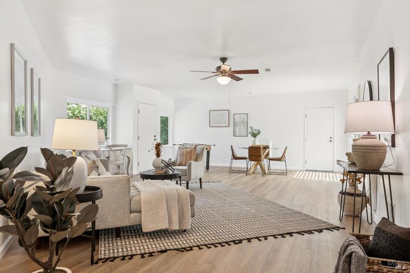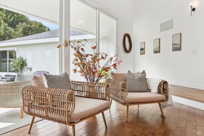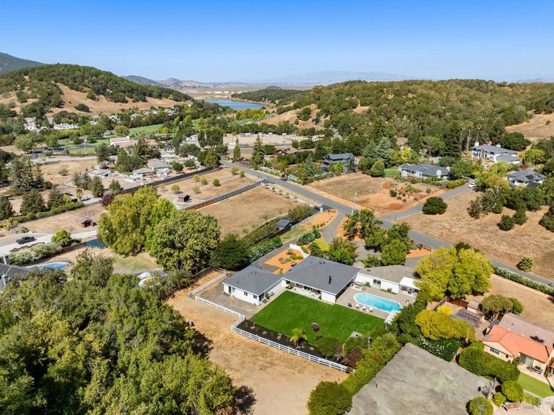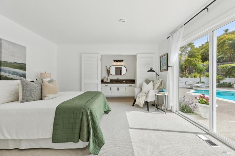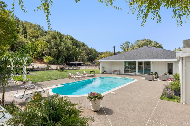 Experience a relaxed lifestyle in this tastefully remodeled 4,641 sq ft farmhouse property on one of Novato's most desirable & peaceful lanes. A circular drive welcomes you offering ample parking for 15+, while a second driveway provides access to the barn area. Designed for easy indoor-outdoor living, the mostly single-level layout features 4 bedrooms & 4.5 baths, inc. a separate wing with a private entrance, ideal for extended family, guests, or a potential JR ADU. The fabulous living room, with 17' ceilings, has been a host for live concerts, offering incredible acoustics. Natural light fills the living spaces with large, picturesque windows. The chef's kitchen creates a true great-room experience with an oversized island and generous entertaining space. The primary suite is a bright, peaceful retreat with a custom walk-in closet and spa-inspired bath with a connecting mudroom (possible 2nd laundry room option). Step outside to take in sweeping views, a sparkling pool, expansive lawn, multiple patios, a pergola - perfect for a magical evening gathering under the stars. The property is equestrian-ready with a 2+ stall barn/pasture, but the space also has endless possibilities, such as guest house, sport court, or additional garage space. Just minutes to Hwy 101/37.