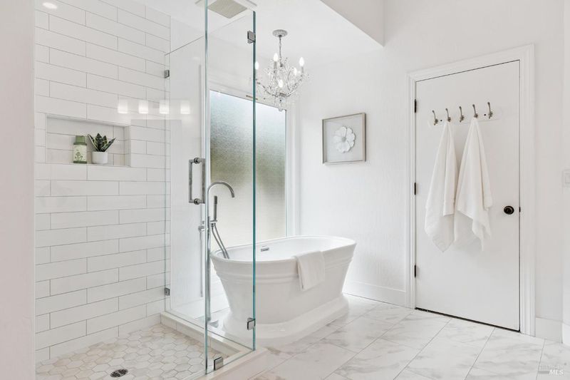 - Double Sinks, Granite, Low-Flow Toilet(s), Outside Access, Shower Stall(s), Soaking Tub, Tile, Window