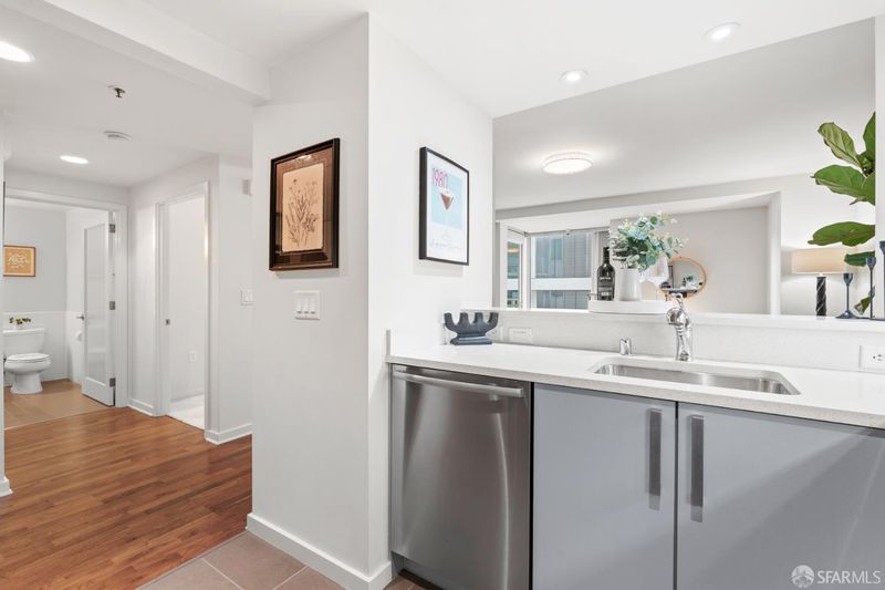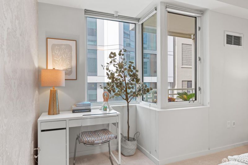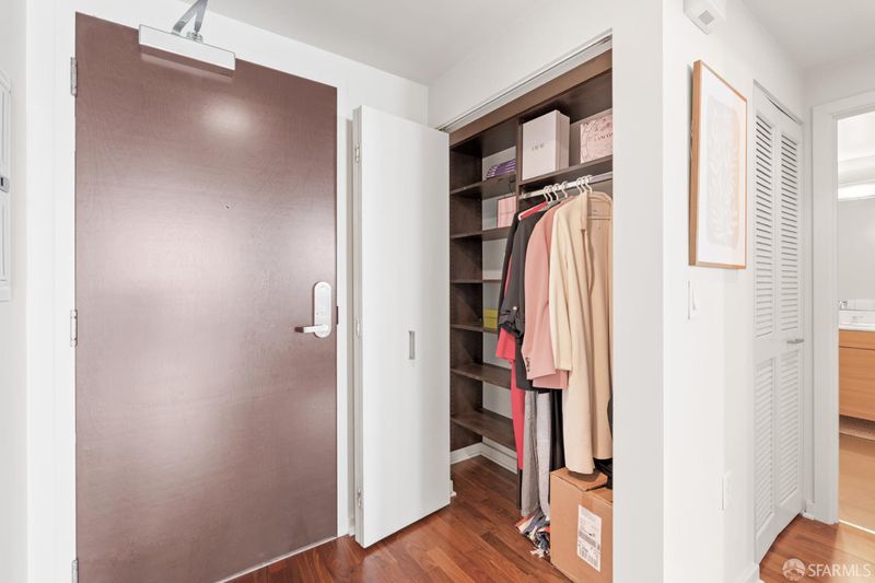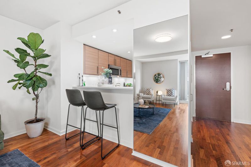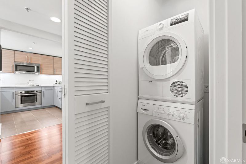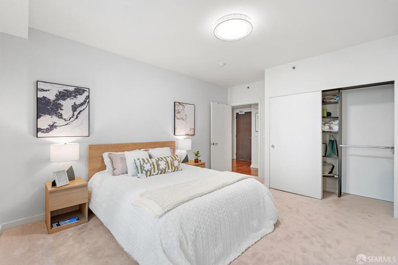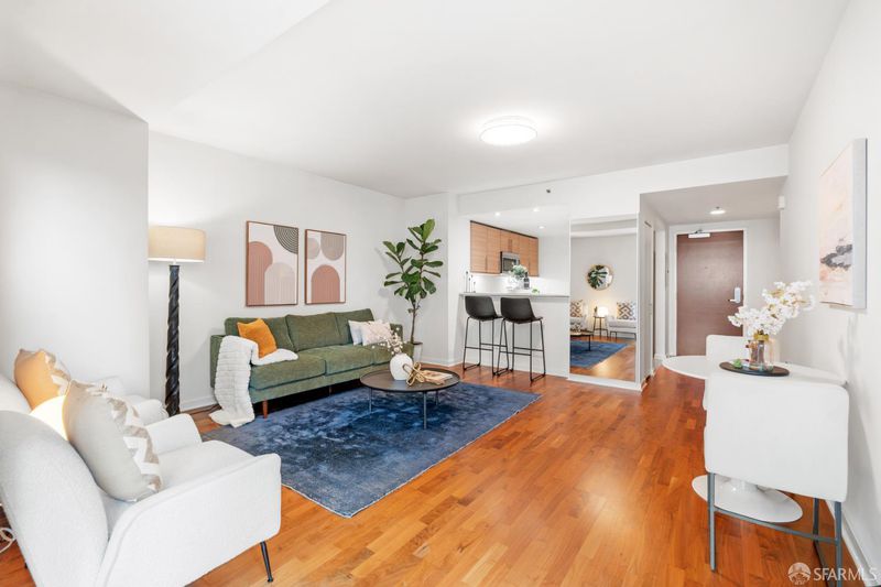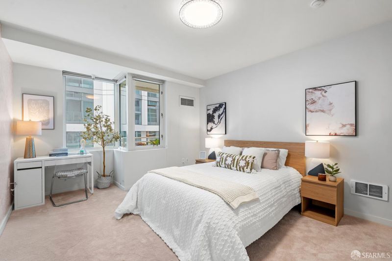 Modern comfort & sophisticated city living await in this serene residence at The Palms, offering the perfect balance of elegance, convenience & style in the heart of South Beach. The welcoming entry features two custom-organized closets & wood floors that flow into a bright, open living area framed by floor-to-ceiling windows and a private patio, an inviting retreat for morning coffee or evening relaxation. The chef's kitchen delights w elegant tile flooring, high-end Bosch SS appliances & generous cabinetry, while the oversized bedroom exudes tranquility w designer wallpaper, plush new carpet, an upgraded closet system, and an integrated office nook illuminated by natural light. The beautifully finished bathroom offers a spa-inspired design complemented by an in-unit W/D w additional storage. A premium parking space on the third floor, valued around $53K & free of $300 mo parking fees, is included. Residents enjoy resort-style amenities including 24/7 concierge and security, a fitness center, yoga studio, 20-seat theater, and an elegant owner's lounge with low HOA dues. Ideally situated near the Embarcadero, Caltrain, Whole Foods, and San Francisco's best dining and entertainment, this turnkey home also offers the option to purchase furnishings for a seamless move-in experience
