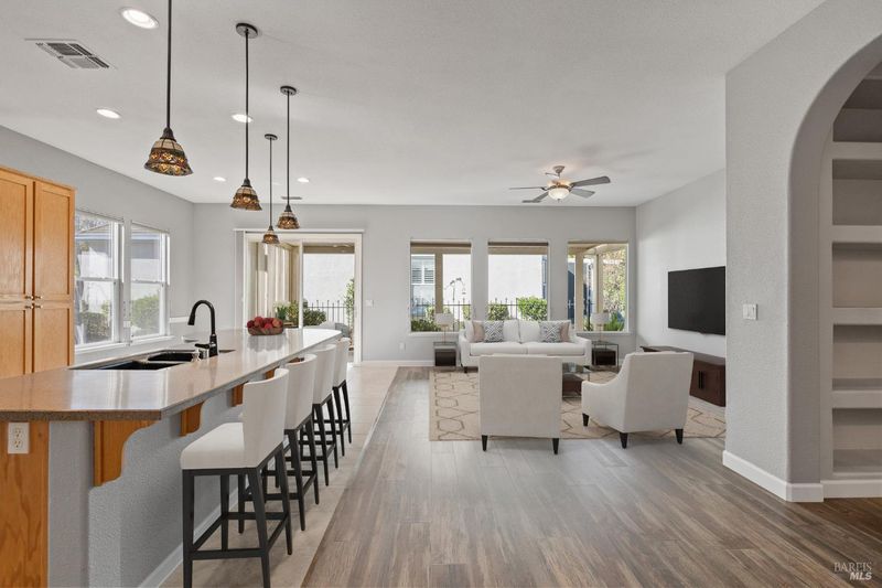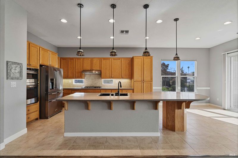 - Breakfast Area, Island w/Sink, Kitchen/Family Combo, Other Counter, Pantry Cabinet