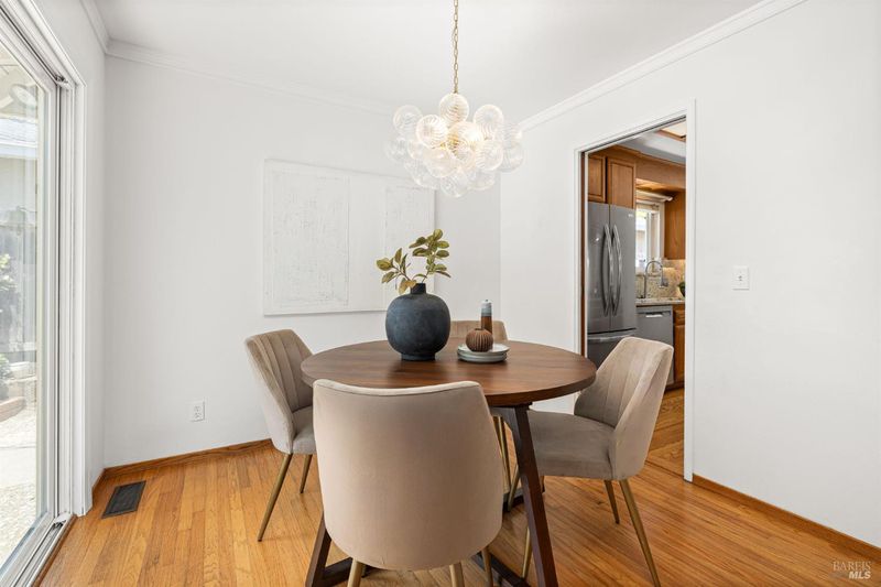 Single-level Browns Valley home with private rear yard. Located in one of Napa's most desirable neighborhoods, this updated residence blends mid-century character with modern upgrades. Refinished hardwood floors and Milgard dual-pane windows enhance natural light throughout. The kitchen features granite counters and new 2024-2025 stainless appliances - oven, dishwasher, refrigerator, vent hood, and faucet - plus refreshed lighting and recessed fixtures. The primary suite includes a sliding door opening to the TREX deck overlooking raised garden beds and mature trees with no immediate rear neighbors. Comfort upgrades include a 2019 HVAC system and new electrical subpanel. Enjoy proximity to Browns Valley School (~0.2 mi), Browns Valley Market, Hop Creek Pub, Browns Valley Yogurt (< 1 mi), and Timber Hill Park (~ 0.5 mi). Just 3 mi to Downtown Napa and nearby Westwood Hills Park. A rare opportunity for privacy and single-level living in sought-after Browns Valley.
