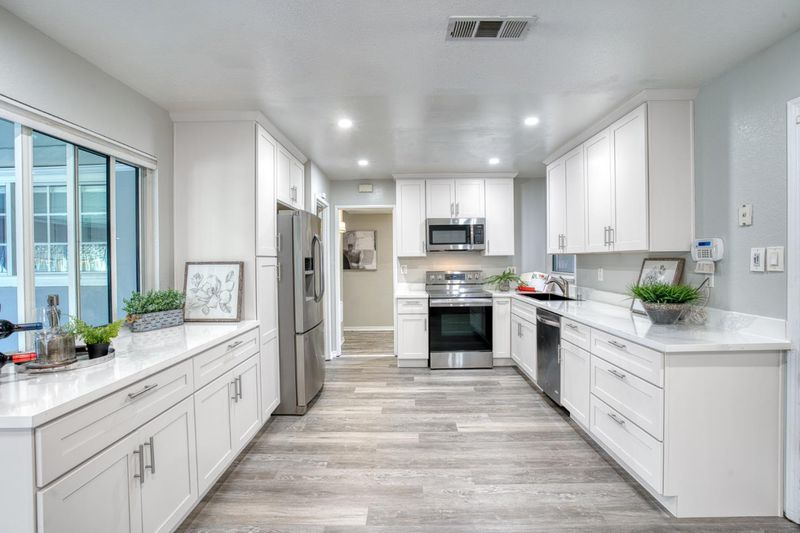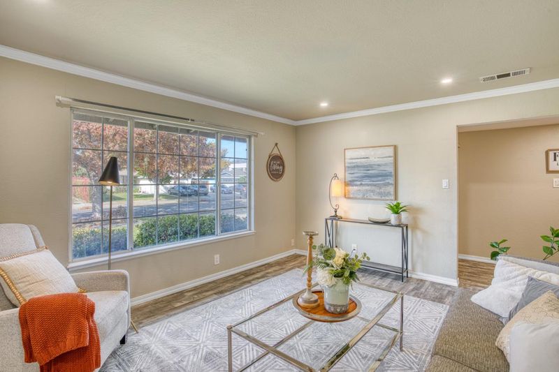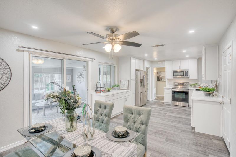 This beautifully maintained, well-loved, and thoughtfully updated single-story home is nestled in a quiet and highly desirable Blossom Valley neighborhood. The residence exudes warmth and comfort, featuring a bright, open-concept layout with stylish finishes throughout. Step inside to discover a newly remodeled kitchen equipped with sleek granite countertops, white cabinets, stainless steel appliances, and recessed lighting, perfect for cooking and entertaining. The adjoining dining area flows seamlessly into a cozy sunroom that opens to a beautifully landscaped backyard, creating the ideal space for outdoor gatherings and relaxation. The spacious backyard, complete with several fruit trees, offers both privacy and tranquility for entertaining or unwinding in nature. Additional highlights include updated flooring in the primary bedroom, central AC with a Nest thermostat, and an inviting curb appeal enhanced by lush greenery, a manicured lawn, and a welcoming front porch. Conveniently located near top rated schools, parks, shopping, dining, the Santa Teresa Library, and Kaiser Hospital, this exceptional home combines modern comfort with timeless charm. Do not miss the opportunity to make this rare Blossom Valley gem your own!