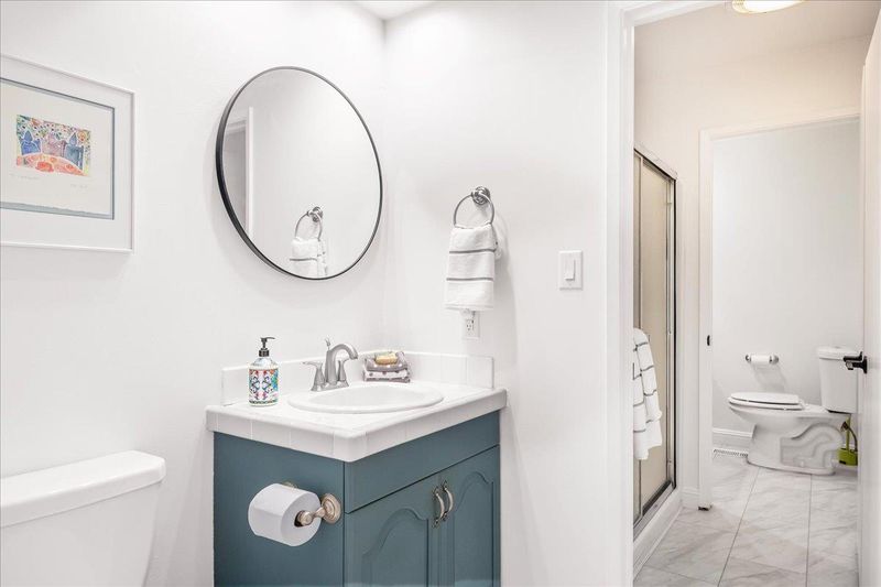 - Double Sinks, Full on Ground Floor, Granite, Half on Ground Floor, Shower and Tub, Solid Surface, Stall Shower, Tile