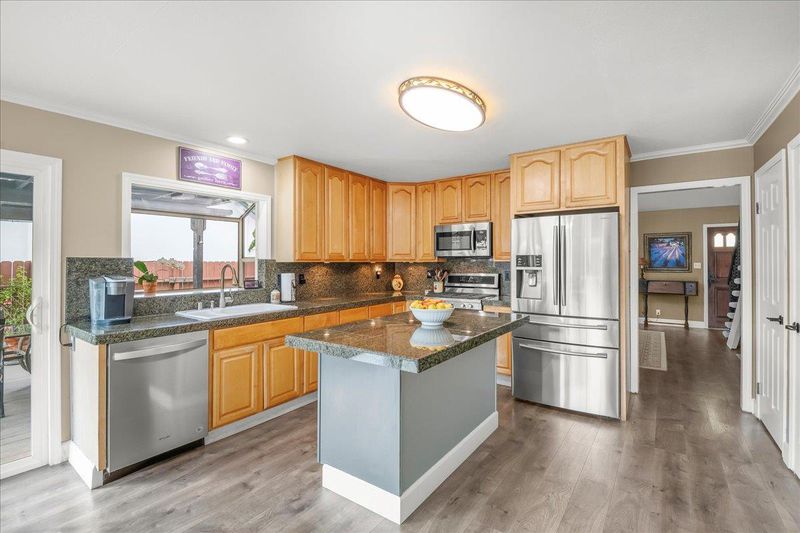 - Cooktop - Gas, Countertop - Granite, Dishwasher, Exhaust Fan, Garbage Disposal, Hookups - Ice Maker, Ice Maker, Microwave, Oven Range, Refrigerator