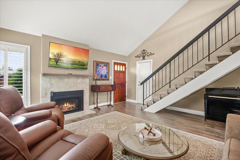 Located in the highly desirable Rancho Santa Teresa neighborhood, spacious multigenerational home with style. Dramatic vaulted ceilings create a grand first impression, while updated finishes and flexible living spaces accommodate a busy lifestyle. The main level features a formal living room with LVP flooring, a new tile fireplace with gas insert, rustic mantle, and corner windows with plantation shutters. The beautifully remodeled kitchen offers a center island, granite counters, full backsplash, oak cabinetry, stainless appliances, 5-burner gas range, walk-in pantry, and dining area with glass slider to the covered patio. Three main-level bedrooms include a primary suite with Jack-and-Jill bath, dual vanities, and double closets. The backyard oasis features a raised deck, pool, lush landscaping, and garden area. Upstairs, an oversized flex/game room with vaulted ceilings and hillside views is complemented by two bedrooms, remodeled stylish full bath and a finished walk-in attic. Additional highlights include dual-pane windows, central A/C, and a 2-car garage. Membership to the exclusive Rancho Santa Teresa Swim & Racquet Club, plus proximity to Santa Teresa County Park with miles of hiking/biking and equestrian trails, Santa Teresa Golf Course, shopping, and top schools.
