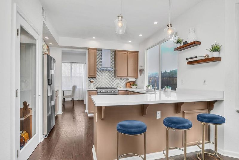 Spacious five-bedroom, three-bath home offering comfort, flexibility, and excellent flow. Thoughtfully updated throughout the main living areas, the home features soaring ceilings, abundant natural light, and an open-concept layout anchored by an expansive great room connecting the kitchen and dining areas, ideal for everyday living and entertaining. The updated kitchen offers generous counter space, modern finishes, and clear sightlines to the backyard. Multiple living areas provide flexibility for work, guests, or gatherings, including a downstairs bedroom and full bath. Upstairs, the primary suite includes an en-suite bath and ample closet space, with additional bedrooms offering versatile use. Situated on a generous lot with a private backyard and patio area. Additional highlights include a three-car garage, side yard or RV parking potential, and a well-designed floor plan that balances openness with privacy. Conveniently located near schools, parks, shopping, and commuter routes.