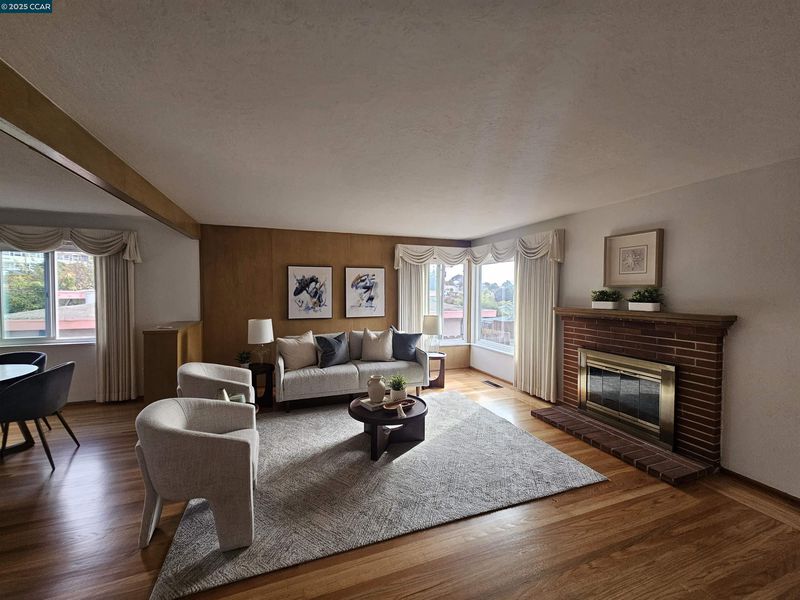 Rare opportunity loved Original owner 1956 mid century home 1st time on mkt. All large spacious rooms, formal dining room, big kitchen w/ eat in space, large hall bathroom w/ old school tile in great shape, beautiful hardwood floors were carpeted since 1956, just refinished, new paint, all bedrooms are large w/ big closets. Nice size back yard. All level front and back yards and house hard to find like this in East Richmond Heights. The home is surprisingly bright and spacious inside. Not many opportunities like this.