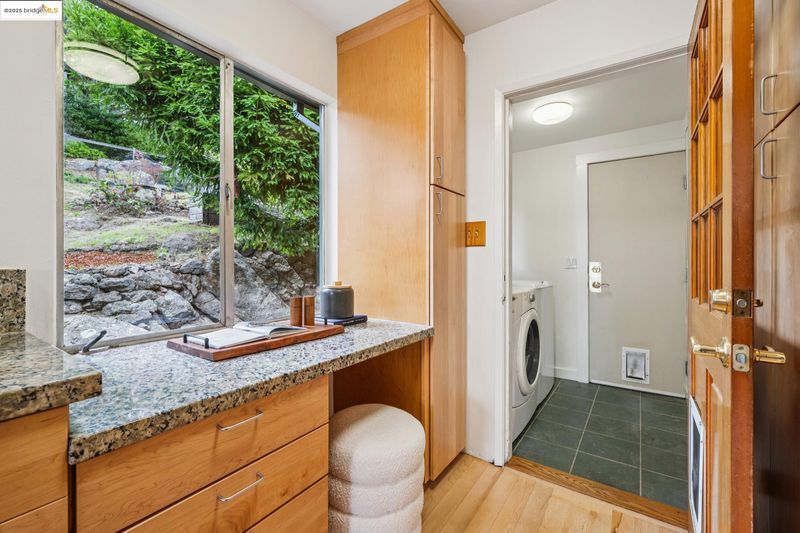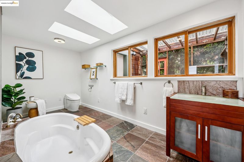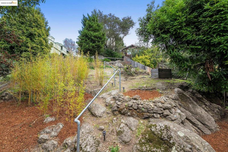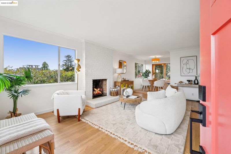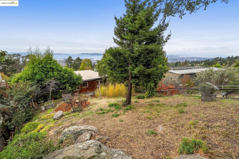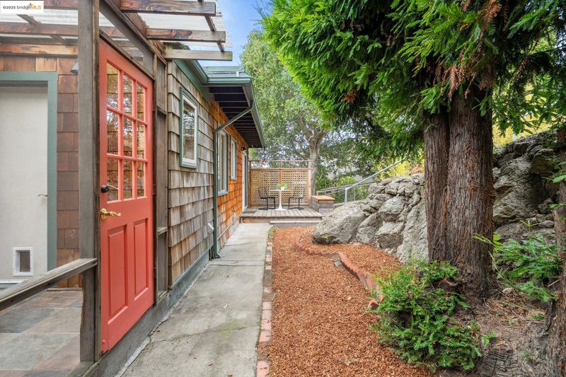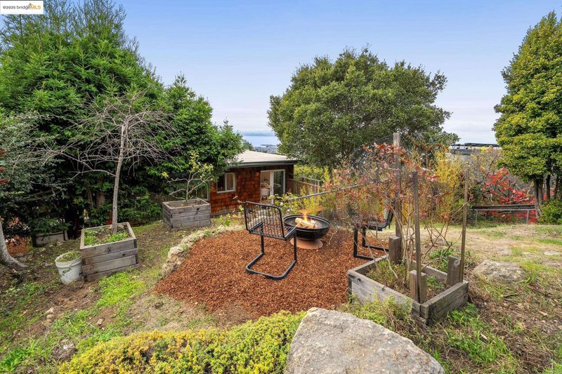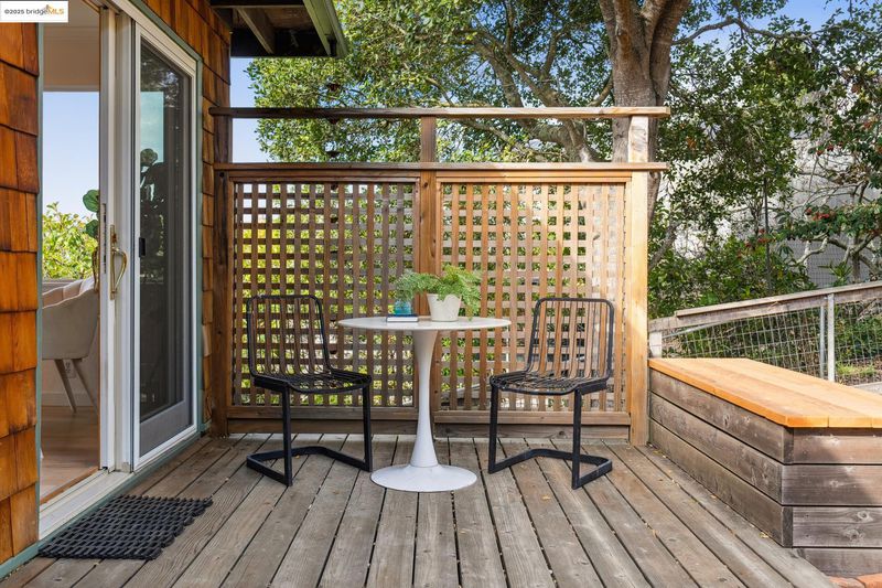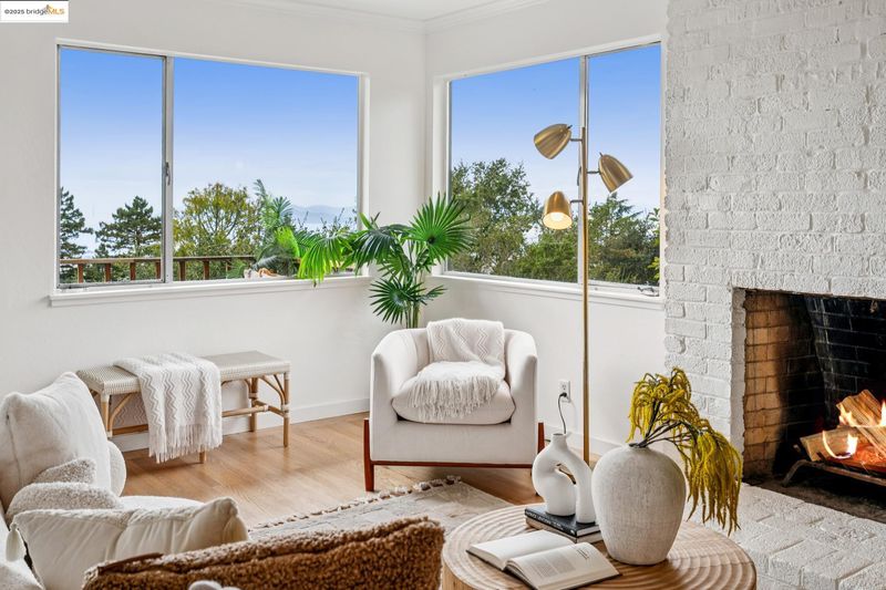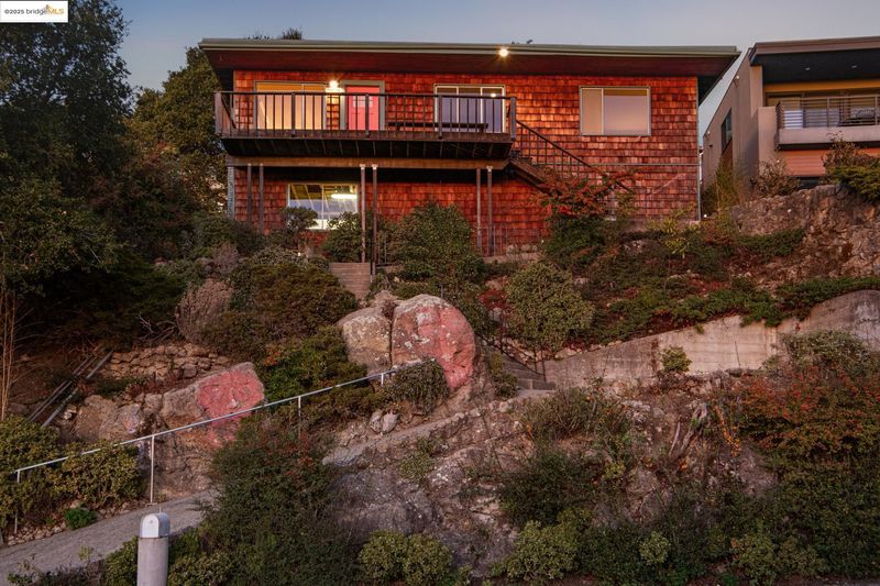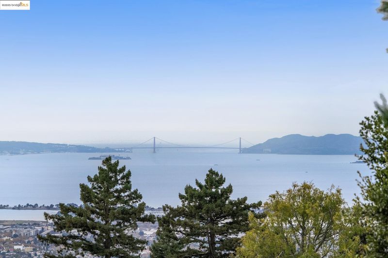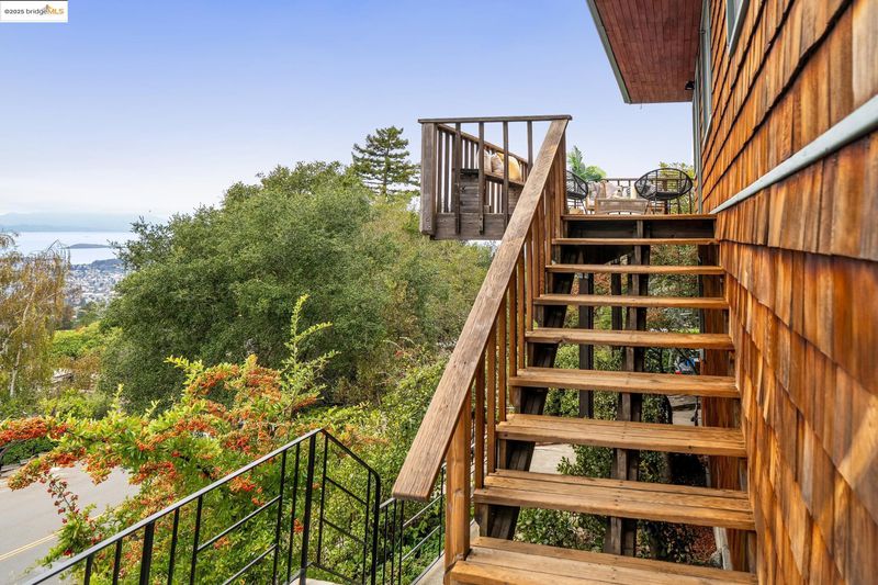 Breathtaking view home in the Berkeley Hills! Perched atop the bedrock, adjacent to the Atlas Hiking Path, this cozy two bedroom home is perfect for nature lovers and those wanting a getaway to the clouds. Enjoy unobstructed views of the San Francisco Bay from the front deck, living room, and both bedrooms. Afternoon sunshine pours in onto the newly refinished hardwood floors and a freshly painted brick fireplace. Enjoy your mornings at the eat-in kitchen while looking out onto the back deck, adorned with redwood trees. Plan meals in the thoughtfully renovated kitchen with quartz cabinetry and tons of organized storage. Keep going past the interior laundry room to enter into the relaxing screened in patio which creates a lovely flow from the inside to the outdoors. Head down the hallway to a lovely primary bedroom with a deep soaking tub located en-suite, perfect for relaxing. The second bedroom makes a great office or guest room. Downstairs is a large basement with additional laundry hook ups, a work area, and tons of storage. Located just minutes from UC Berkeley and Tilden Park this home offers a perfect blend of urban convenience and natural beauty!