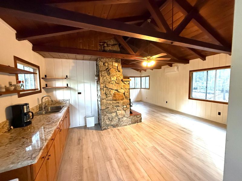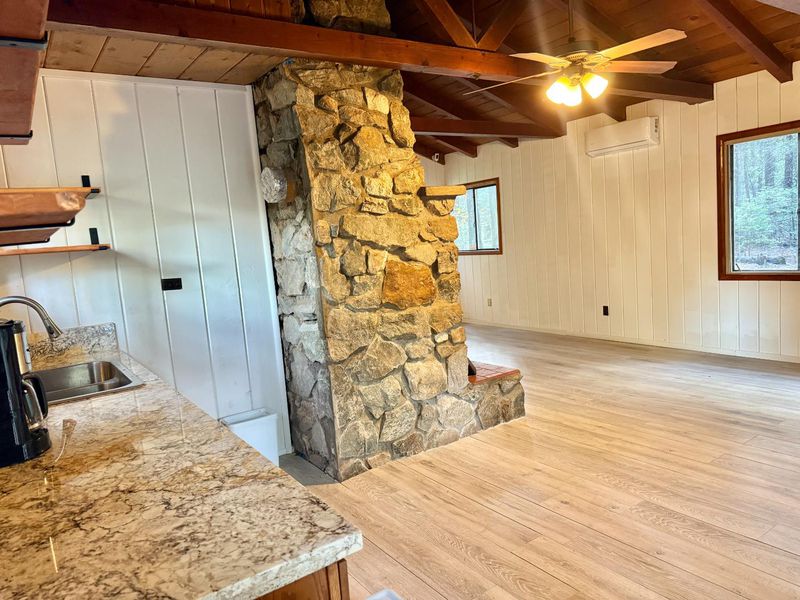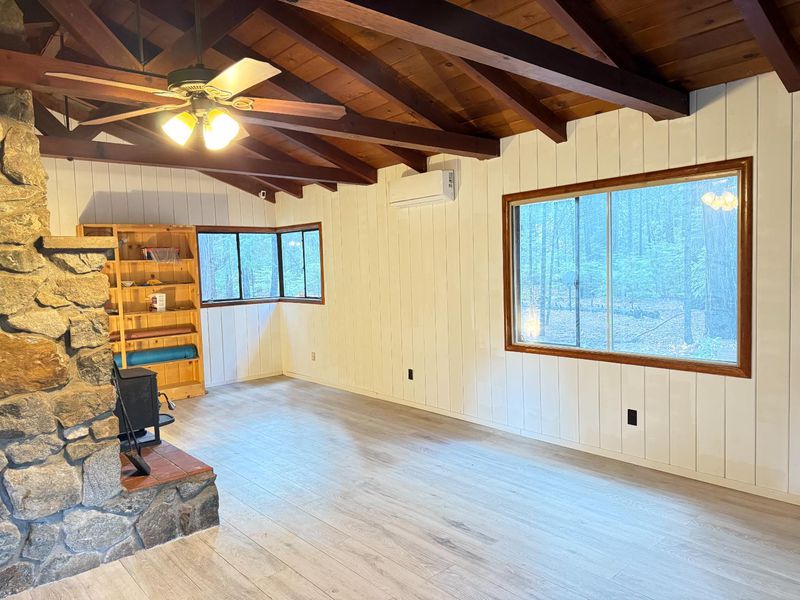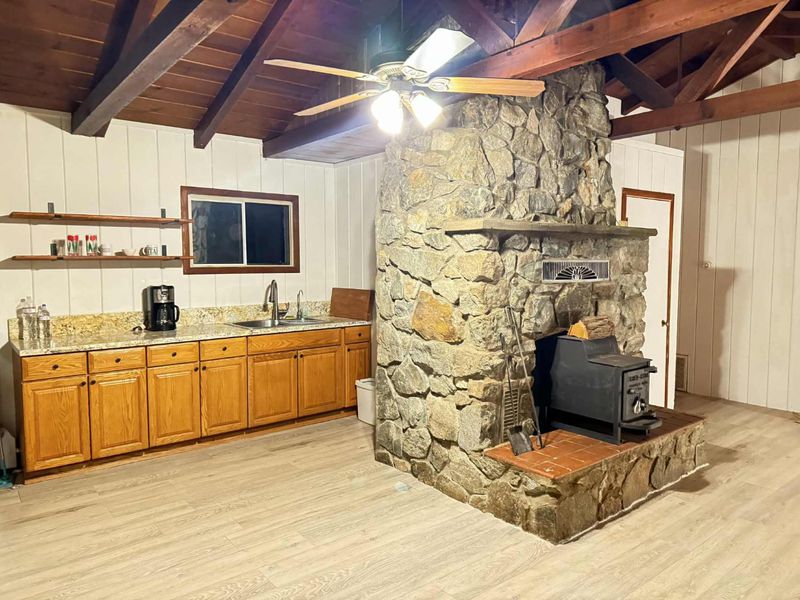 - Living Room, Primary Bedroom, Stone, Free Standing, Wood Stove