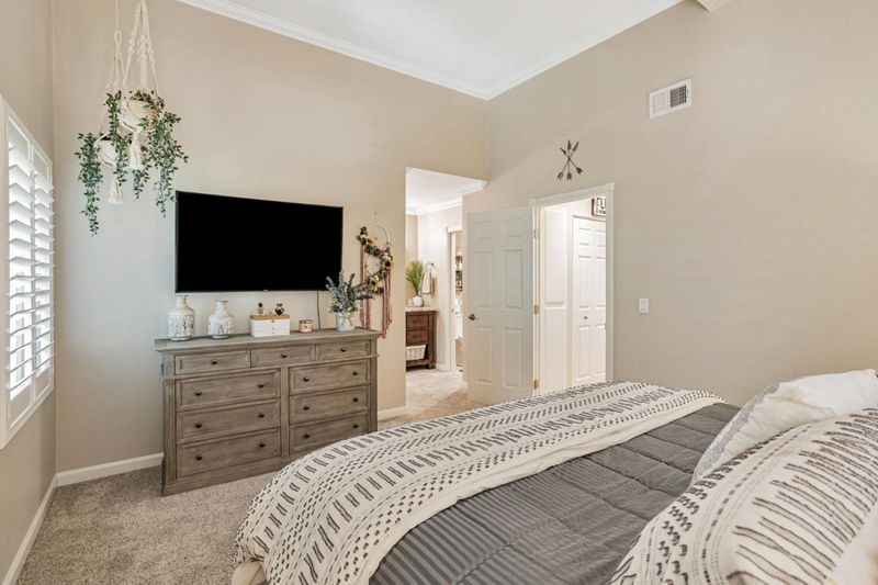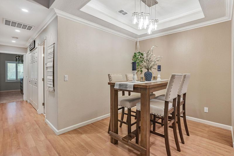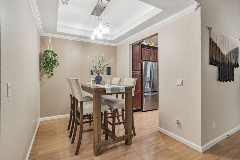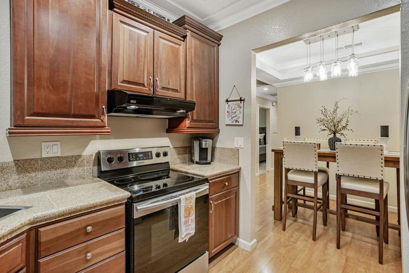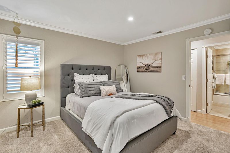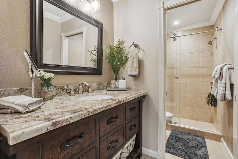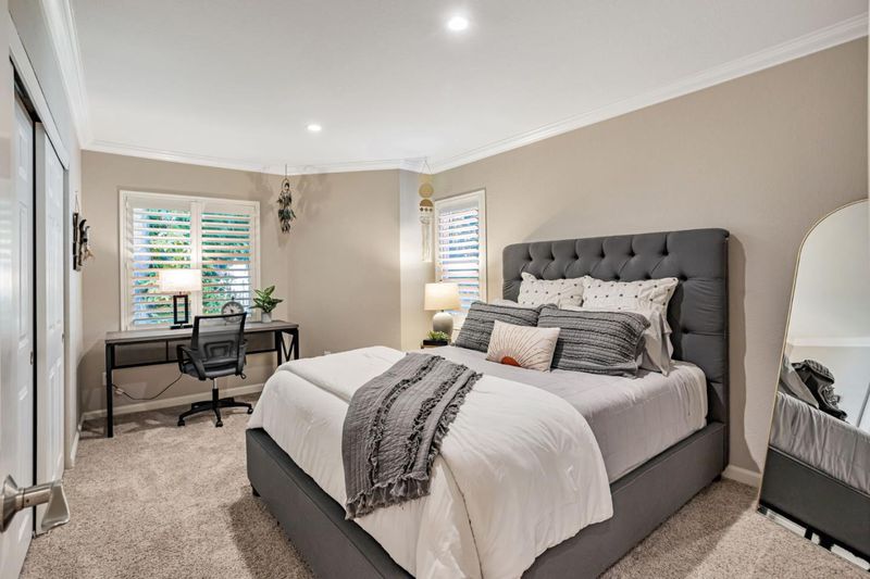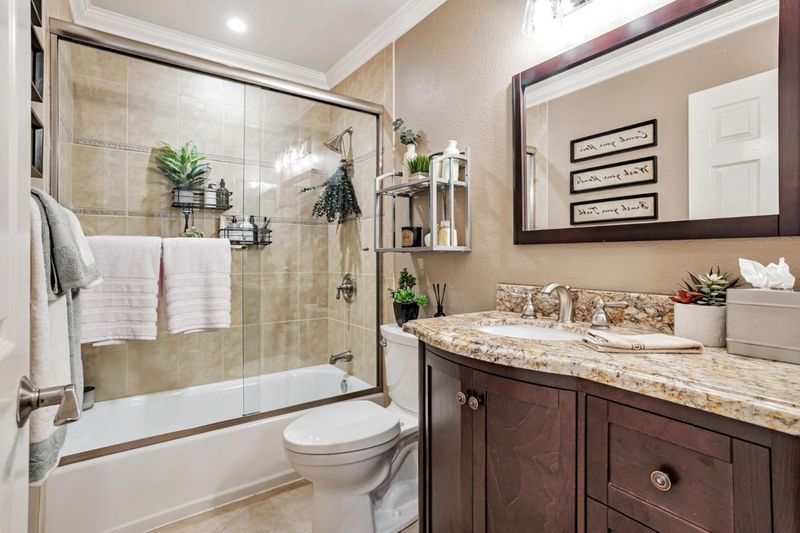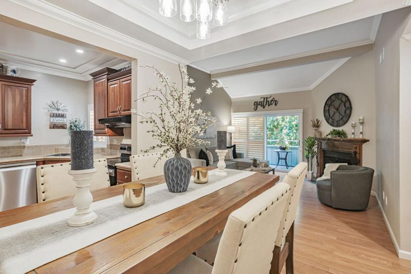 Remodeled top floor unit in desirable Hamilton Place! This light filled home features spacious vaulted ceilings, plantation shutters, recessed lighting, and designer touches throughout. The updated kitchen offers granite countertops, abundant cabinet storage, and stainless steel appliances. Enjoy meals in the dining area with its tray ceiling detail and elegant chandelier. The primary suite includes a walk-in closet, vaulted ceiling, and a modern glass shower. A spacious hall bath, indoor laundry with washer/dryer, private patio, detached 1 car garage with storage, plus an additional assigned parking space add to the convenience. Central air conditioning ensures year round comfort. Set within the highly sought after Hamilton Place community, residents enjoy resort-style amenities including a pool, spa, clubhouse, and lush greenbelt walking paths. Ideal location-just minutes from freeways 880, 17, and 85 for easy commuting, with nearby shopping and dining at The Pruneyard, Whole Foods, and Trader Joes, plus outdoor recreation along the Los Gatos Creek Trail. Whether relaxing by the pool, enjoying your modern kitchen, or cozying up by the fireplace, this unit truly has it all.