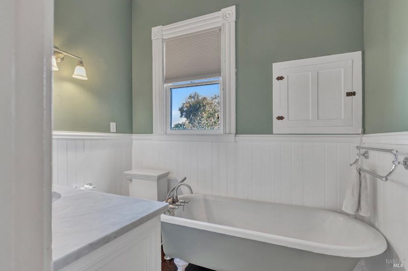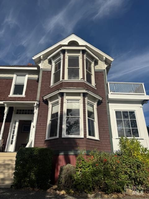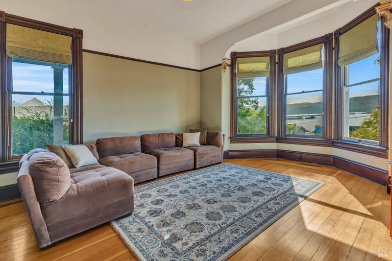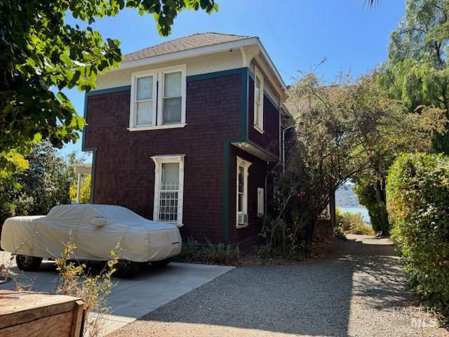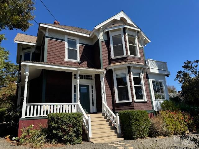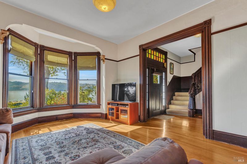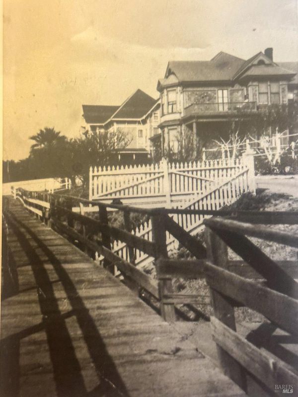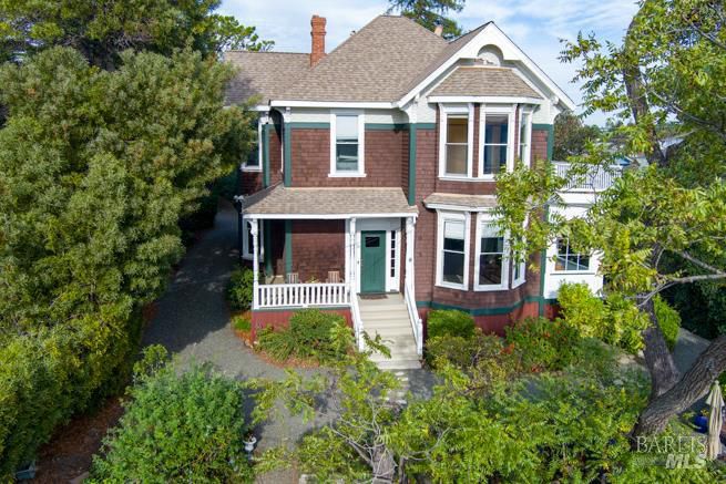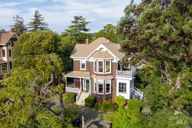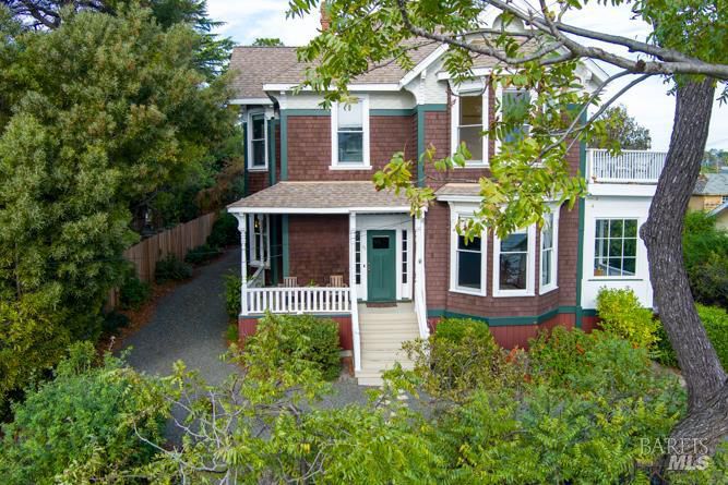 One of the few and special early mansions of historical Benicia, this is an opportunity to own a premier home with incredible land, location and water views! Not even two blocks from 1st Street, positioned on a bluff overlooking the water, this sizable home boasts character, originality and history, 5 bedrooms plus an office, a balcony, a side patio and front porch to experience the stunning views year round. A double lot totaling over 1/3 acre is accessible with two private entry gates. The 2-story carriage house on property exudes opportunity. Lush greenery abounds. Walk to delicious bakeries and restaurants, shops and festivals; enjoy the sought after downtown Benicia lifestyle. A Mills Act home with significant property tax savings and a City designated Landmark home!