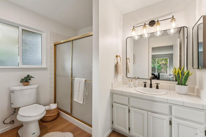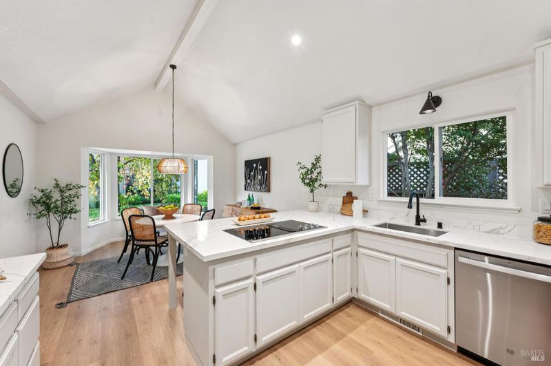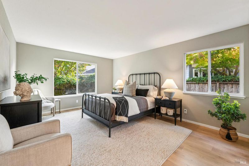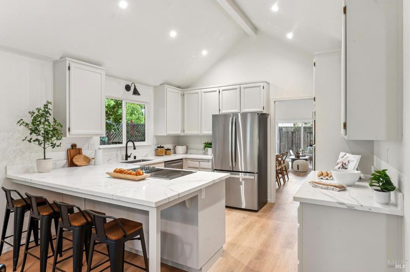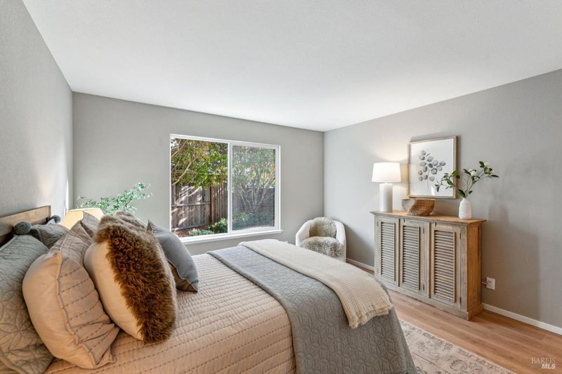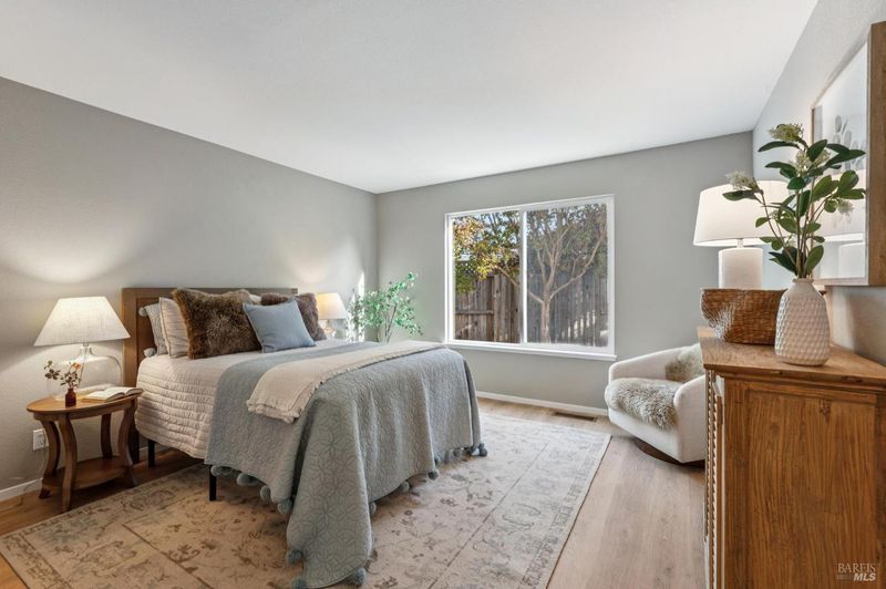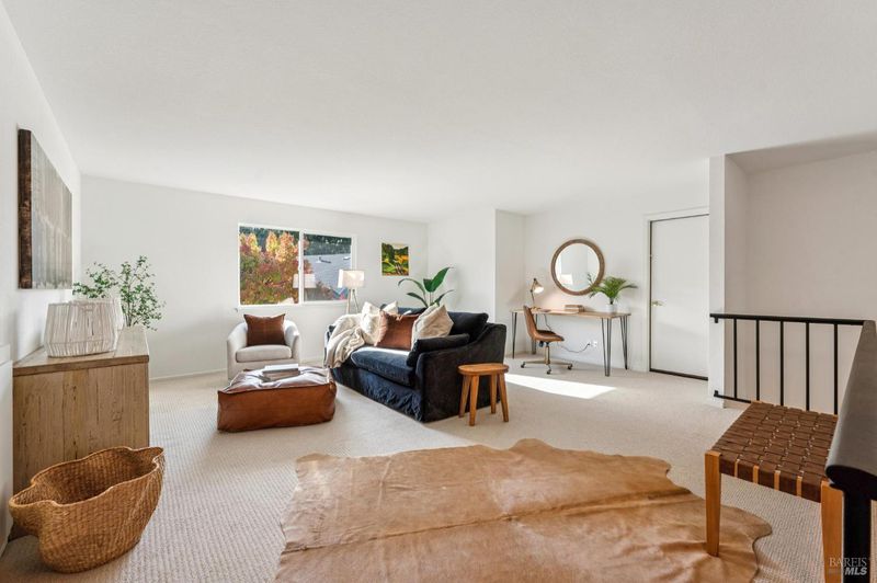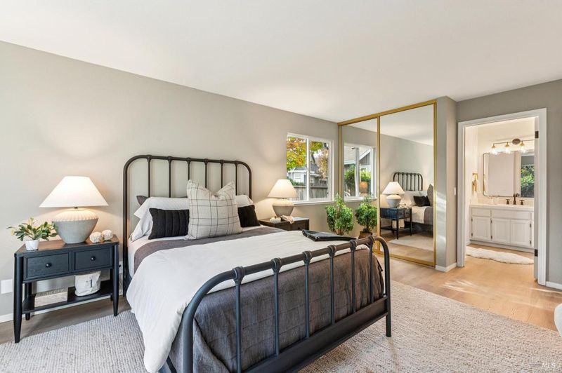 Tucked away on a quiet cul-de-sac near downtown Sonoma, owned by the original owner, offering comfort, flexibility, and an inviting sense of space. Both bedrooms and baths are conveniently located on the main level, ideal for those seeking single-level living. Upstairs, a generous loft serves as an additional family room, office, or third bedroom, while two large storage rooms have the potential to be converted into a closet and full bath creating the ultimate three-bedroom, three-bath retreat. The open-concept living room showcases soaring vaulted ceilings, a tile-accented fireplace, and a sliding door to a private patio surrounded by mature trees and lush landscaping, an ideal setting for relaxing or entertaining. The spacious kitchen, anchored by a large island, features updated counters and brand-new appliances, with an adjacent dining area that flows effortlessly for everyday living or special gatherings. A two-car garage, peaceful setting, and low HOA fees covering all front landscaping complete the appeal. Just minutes from shopping, restaurants, and the Sonoma Plaza, this home is ready to welcome its next owner.