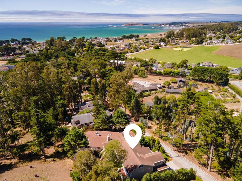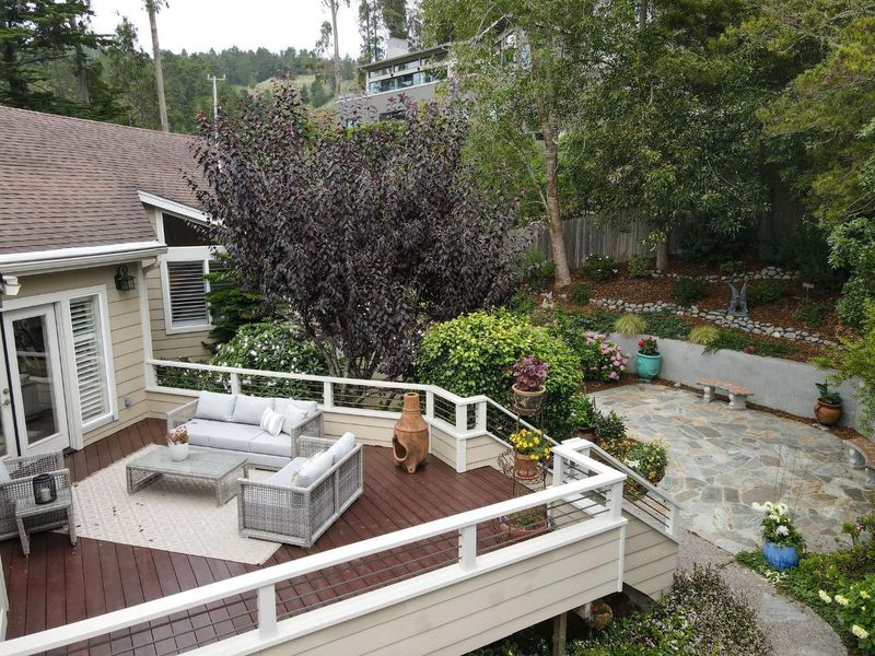 Enjoy ocean views from this grand, contemporary, Coastside home located in Miramar with a LEGAL IN-LAW for guests, short-term rental, or additional income to pay your mortgage. This stunning abode features 5 large bedrooms and 3 1/2 bathrooms providing ample space for everyone. Formal upstairs living room w/ vaulted ceilings, fireplace and access to the rear yard. The kitchen, also with high ceilings is equipped w/ modern amenities that cater to culinary enthusiasts w/ island with stainless steel down-draft range, built-in oven and microwave, and refrigerator. The kitchen family room combo is ideal for entertaining while a more elegant dining room is adjacent to the kitchen. Retreat to the primary bedroom w/ access to the rear yard, fireplace and extra large walk-in closet. The large primary bathroom includes a stand-in shower, dual vanities and oversized tub. Located on the downstairs level is an office and spacious rumpus room that could be used as a play room, media room, or bedroom. Also on the lower level is the approximate 600sf, 1 bedroom/1 bathroom, fully self contained ADU with separate entrance. The exterior of the home has decks off of each of the doors to the house and the luscious landscaping is on a timed irrigation system. Coastal Living at its finest!