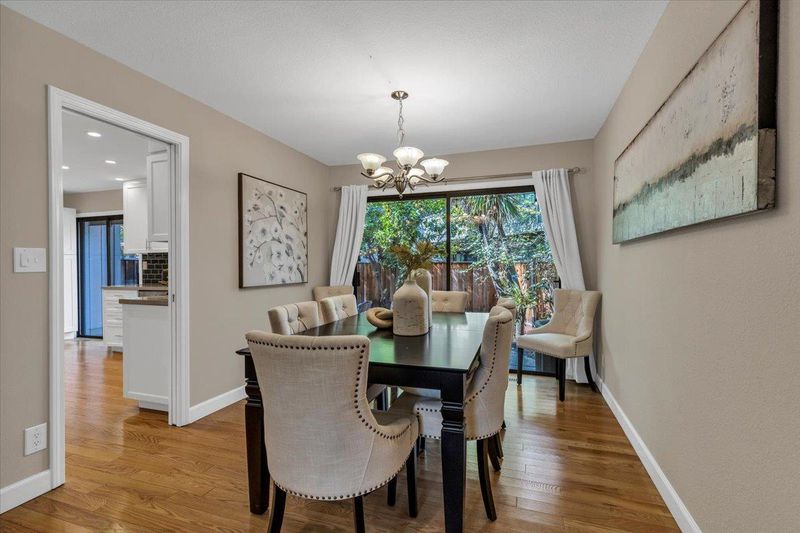 Stylish corner unit townhome in the desirable Courtstyle community of Los Gatos with access to top rated Los Gatos schools. The main level features hardwood floors, fresh paint, recessed lighting, a spacious living area with a cozy gas fireplace, and a formal dining area. The remodeled kitchen is finished with crisp white Shaker cabinetry, quartz counters, stainless appliances, and abundant storage including a large pantry, all overlooking the backyard. Upstairs, the vaulted primary retreat offers a private balcony, gas fireplace, and a spa inspired bathroom with double sinks, skylight, oversized tile shower, and walk in closet. Additional highlights include updated secondary bathrooms with modern finishes, convenient interior laundry, double pane windows, new carpet upstairs, and a two car attached garage. The rear yard offers generous patio space with café lights, creating a private outdoor setting for entertaining or gardening. Turnkey living in a prime neighborhood and truly a must see.