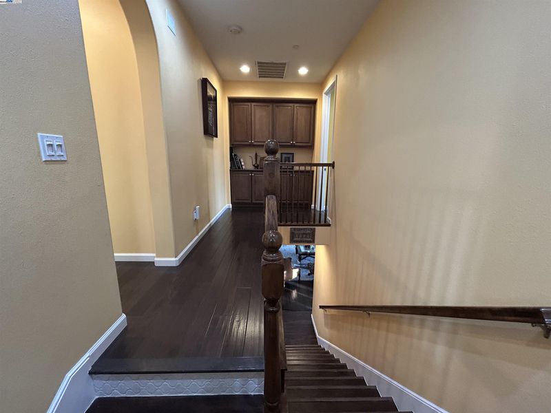 Beautiful Tuscan Residence One at Avanti in Gale Ranch. Northeast Facing showcasing a rare Mediterranean-inspired design within the Gale Ranch community, this stunning residence offers the perfect balance of luxury, privacy, and functionality. Home features 4 bedrooms and 3.5 baths, including a private in-law or casita suite with its own full bath, closet, and separate entrance ideal for guests or multigenerational living. A custom wrought iron front door opens into an inviting foyer that flows through a hallway leading to the casita, offering privacy and comfort right from the entrance. Inside, enjoy fully upgraded hardwood floors, a custom hardwood staircase with tile detailing, and vaulted ceilings that fill the home with natural light. The chef’s kitchen is equipped with granite countertops, Viking stainless appliances, and a large center island that opens seamlessly to the dining and family areas perfect for entertaining. The primary suite upstairs features serene views, a spa-style bath with dual vanities, and a spacious walk-in closet. Two additional bedrooms share a balcony and a conveniently located upstairs laundry room with a built-in sink. *EV Outside, the home showcases Mediterranean landscaping with mature palms, custom stonework, and low-maintenance front and back